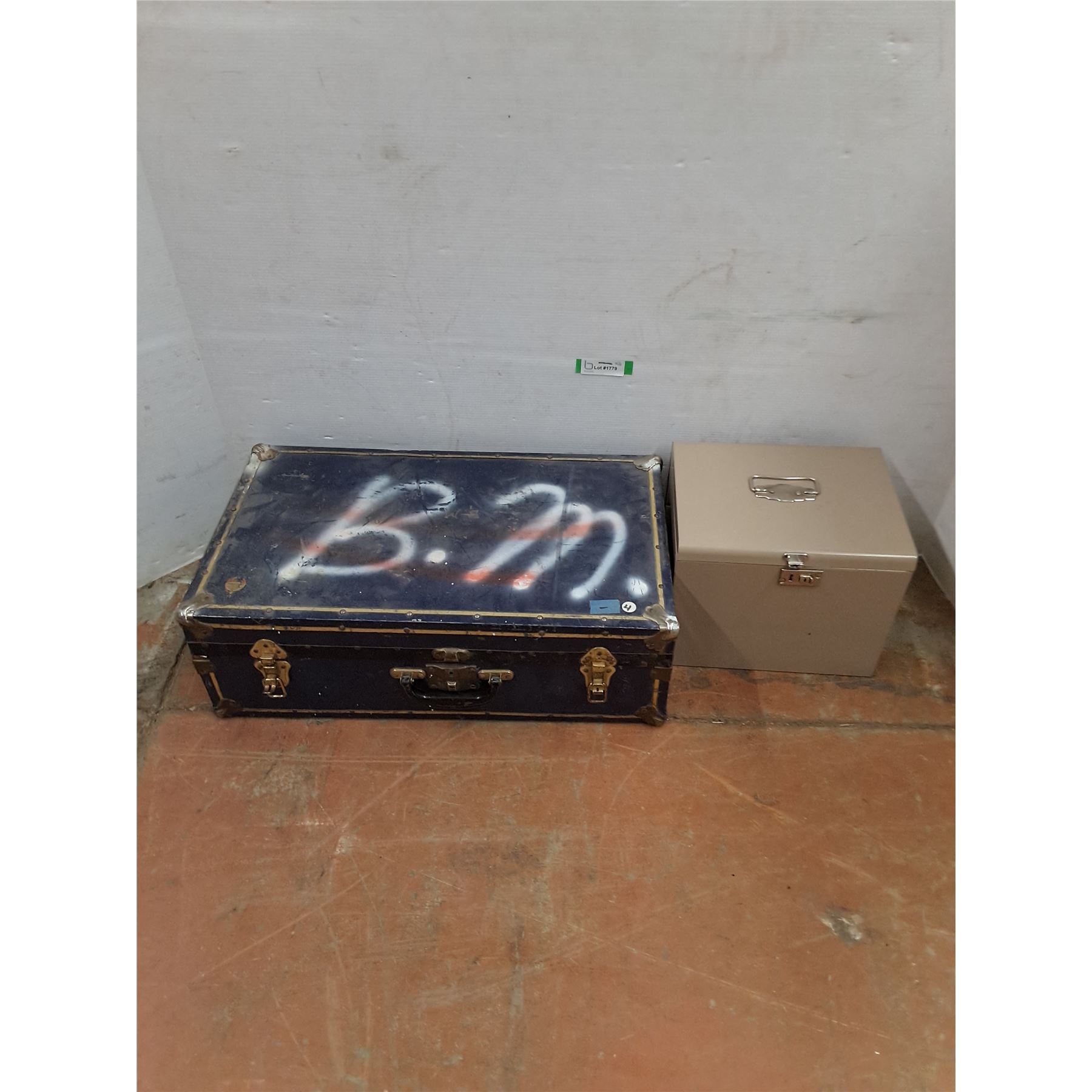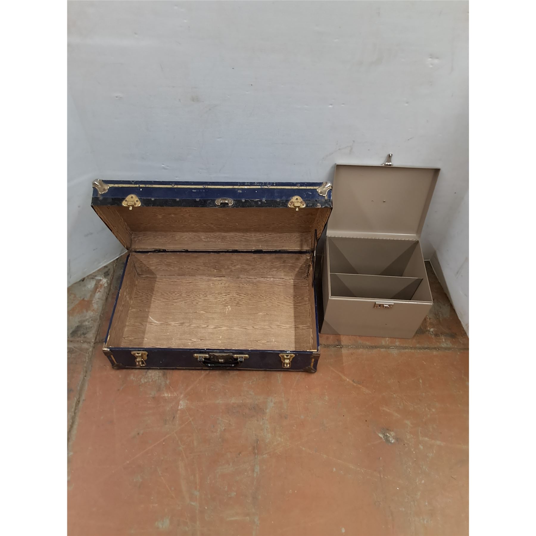 * Vintage Metal Trunk w/Damaged Corner - 26x15.5x9 , Metal File Box - Pickup Only