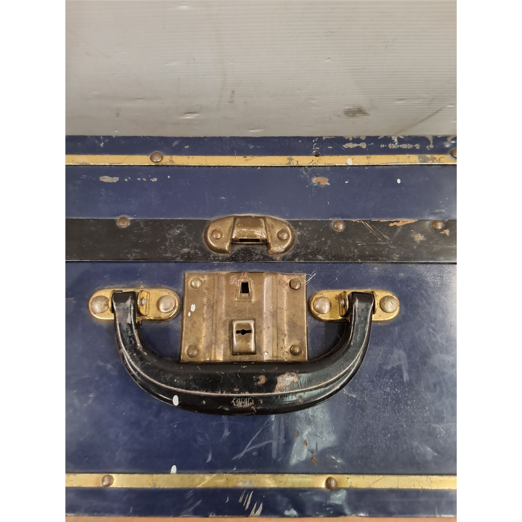 * Vintage Metal Trunk w/Damaged Corner - 26x15.5x9", Metal File Box - Pickup Only