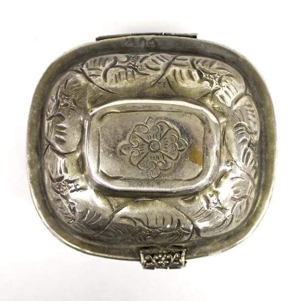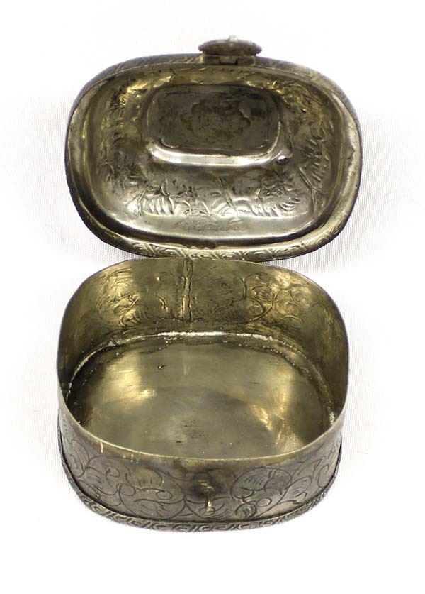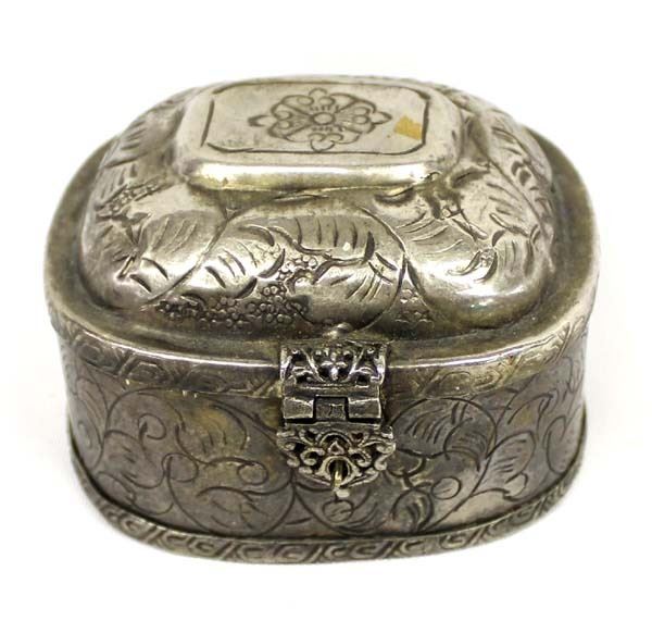 Vintage Mexican Lidded Stamped Tin Trinket Box, measures 2.5'' x 3.5'' x 4''