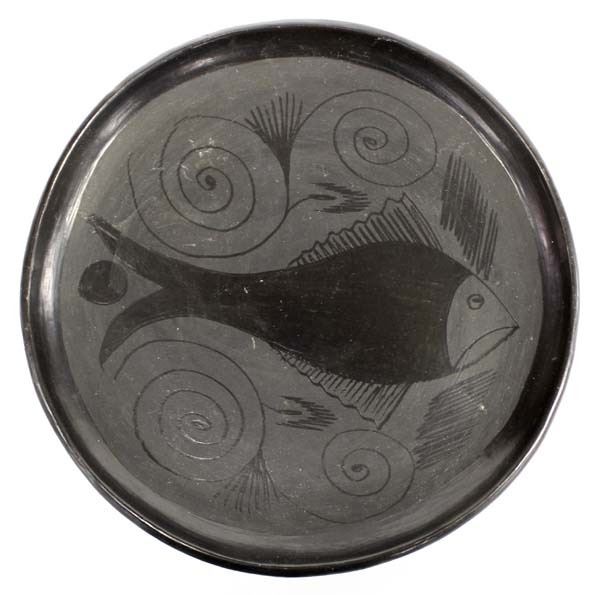 Vintage Mexican Oaxacan Plate, fish motif, measures 1'' x 10''