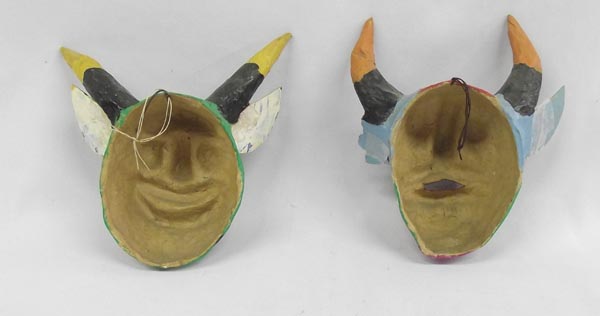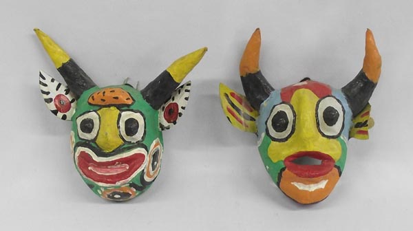 Vintage Mexican Paper Mache Masks. One mask has ear damage. Measure approx. 7''H x 7''W. Buyers Pay Actual Shipping and Handling Charges(see terms and conditions for more information).
