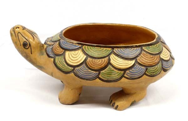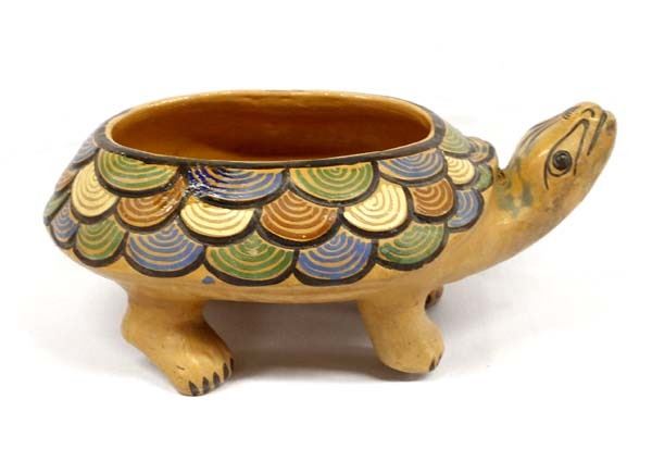 Vintage Mexican Pottery Turtle, measures 45.5''H x 8.5'' x 13''L, marked Mexico on the bottom