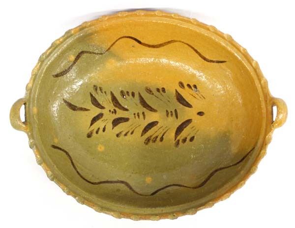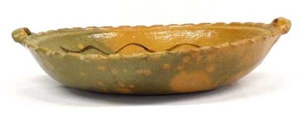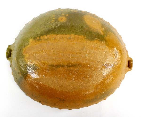 Vintage Mexican Redware Pottery Bowl, double handles, measures 11'' x 14'' x 2.5''