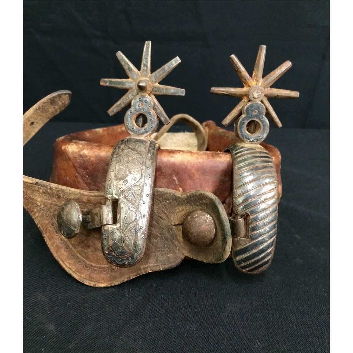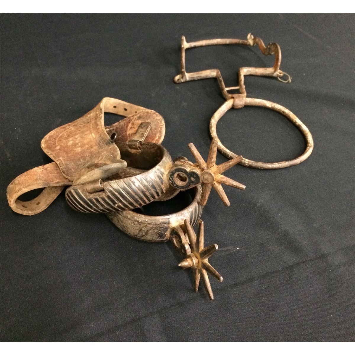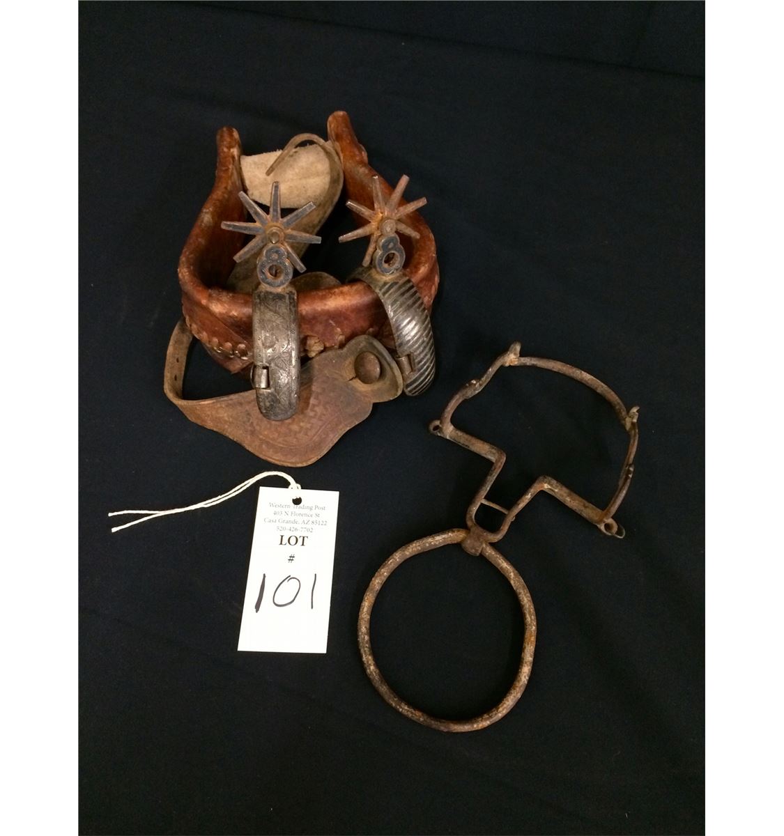 You get a circa 1940s / 50s pair of Mexican spurs and a circa 1800s ring bit for 1 money in this lot! Please look closely at pics, spurs are in great shape, ring bit is not.