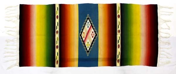Vintage Mexican Saltillo Fringed Textile, measures 68'' x 25'' (includes fringe), beautiful vibrant colors
