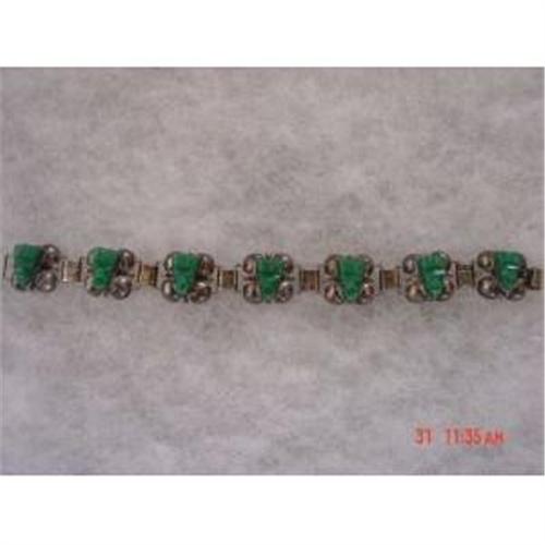 Here is a wonderful Vintage Estate Sterling Signed Ballesteros sterling hand made Mexico number 20 Jade Mayan Face figural link bracelet. Excellent condition. I did not polish this and will leave this up to the purchaser. My guess 1940s