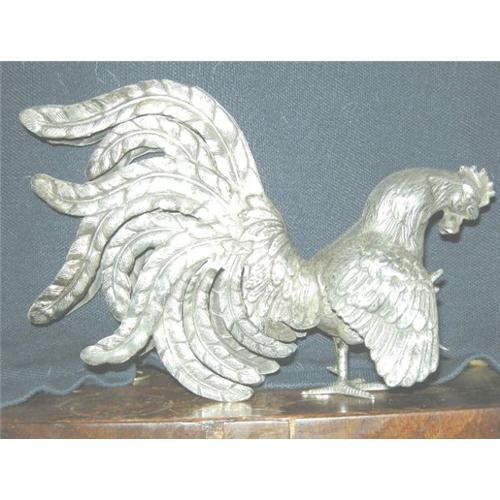 We offer a magnificent sterling silver fighting cock bird. He stands on one foot with the other raised. He is absolutely a wonder to behold as the maker has made the feathers very realistically and the modeling is extremely well done.