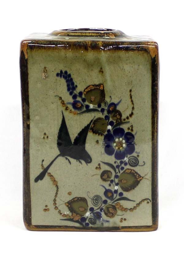 Vintage Mexican Tonala Pottery Vase, measures 6'' x 9'' x 3.5'', stunning colors, marked on the back