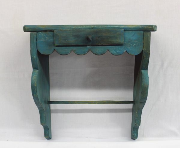 Vintage Mexican Wooden Green Turquoise Shelf MUST BE PICKED UP, measures approx. 10.5''H x 19.5''W x 7.5''D