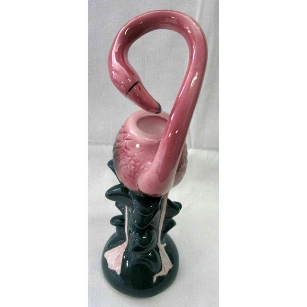 Vintage Miami, mid 20th Century pink flamingo bird, ceramic candlestick holder. Mid century bright coloring. 9" H X 3"D.