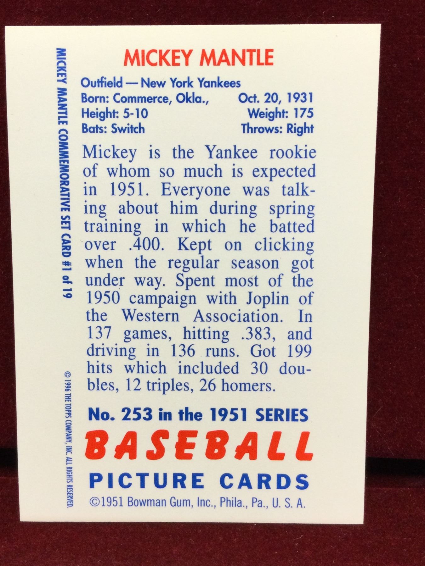 You are bidding on a vintage Mickey Mantle baseball card. A great addition to your collection.