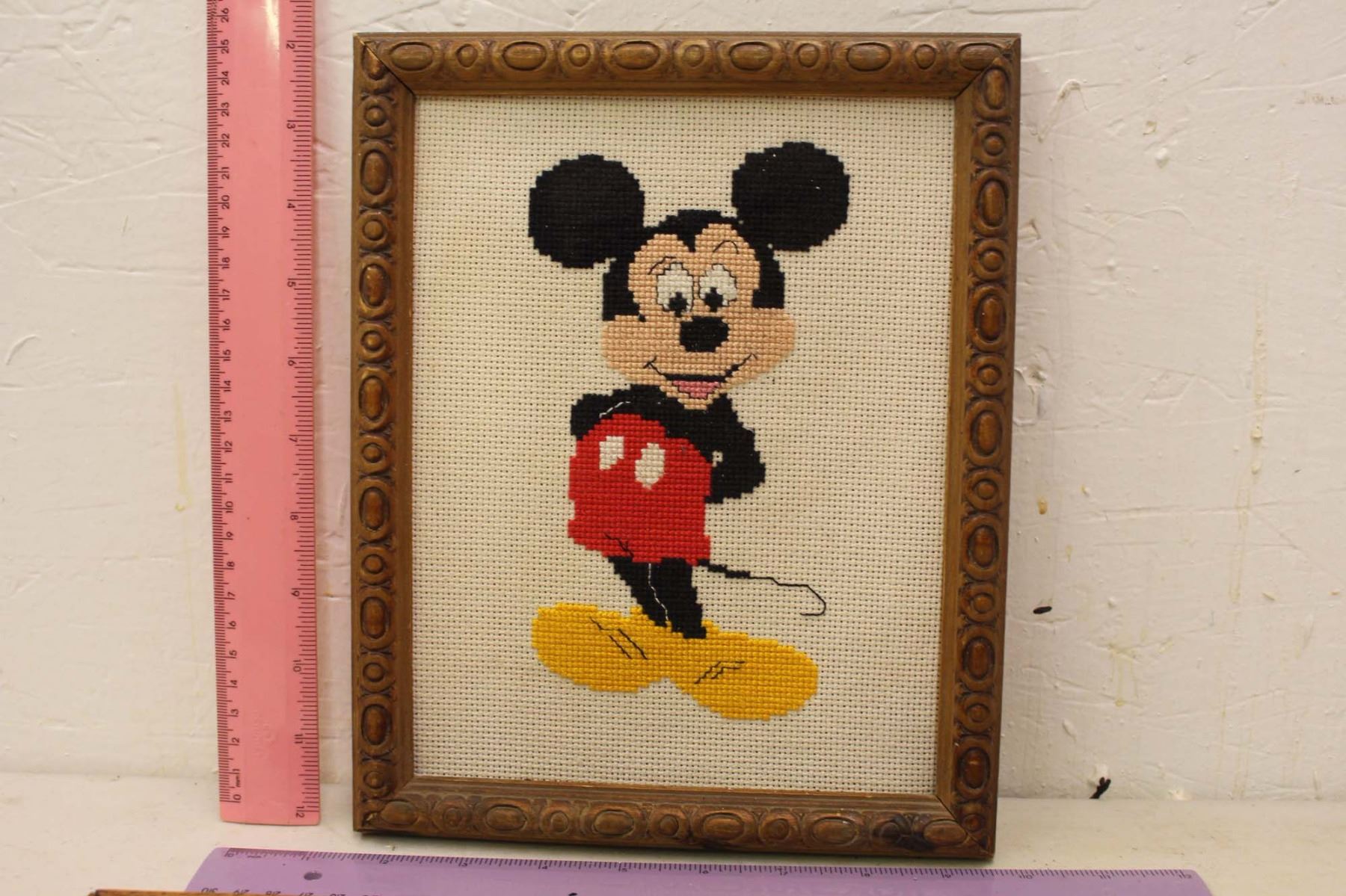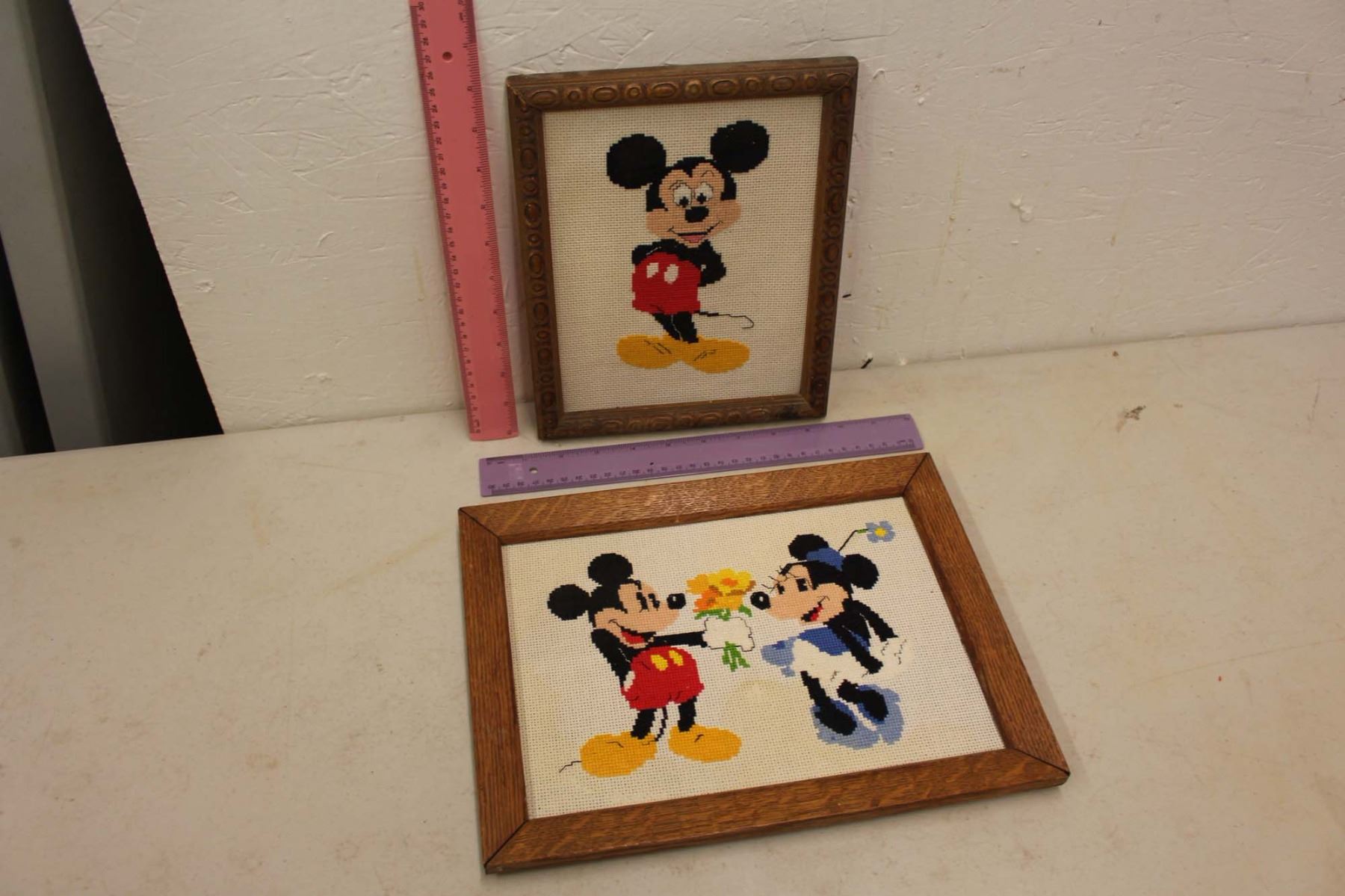Vintage Mickey Mouse Needle Point Framed Pictures (2)