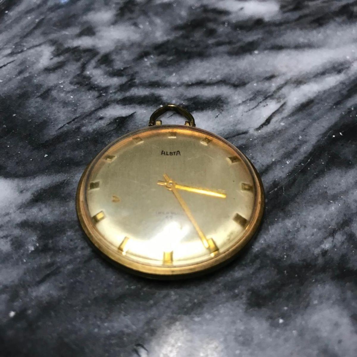 Vintage mid-century Alsta 17 Jewels Incabloc gold filled pocket watch. Missing stem, for parts or repair. 1 7/8" from top of loop.