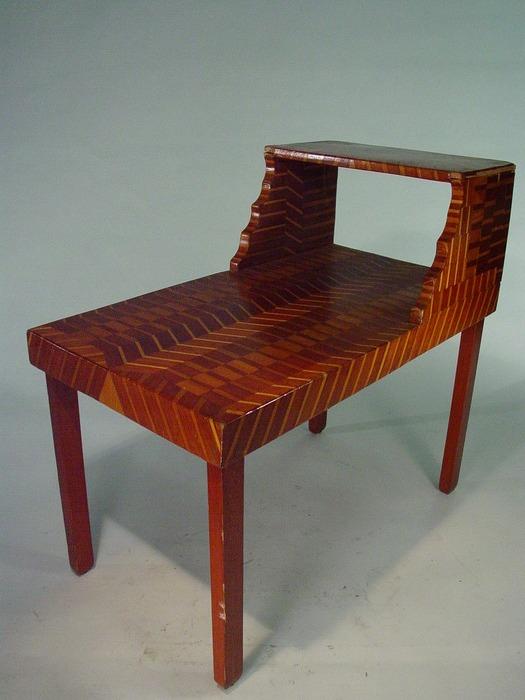 Vintage Mid Century Modern Unique Multi Grain Inlaid Side Table