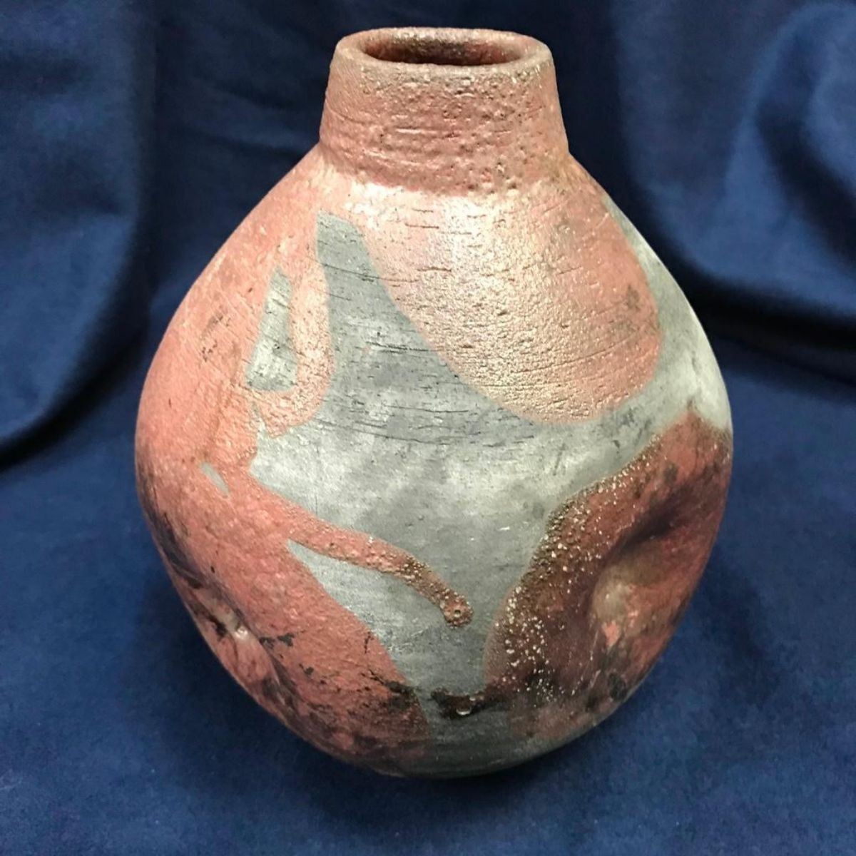 Vintage, mid-century Southern-made red & black raku pottery vase. 5" D X 7" H. Provenance - Moreland Smith Estate, NC.