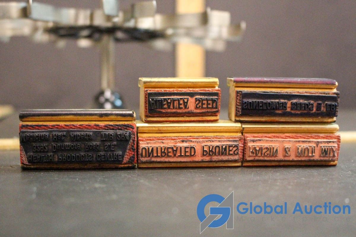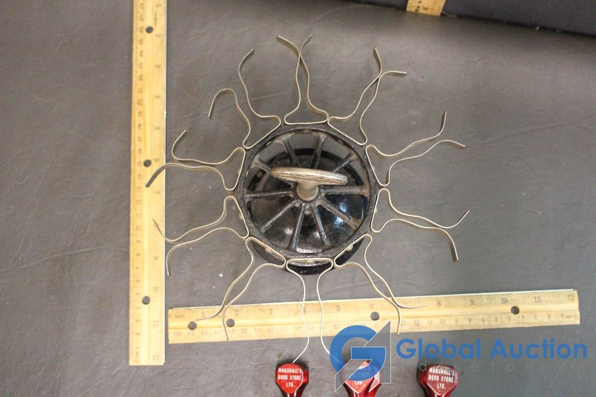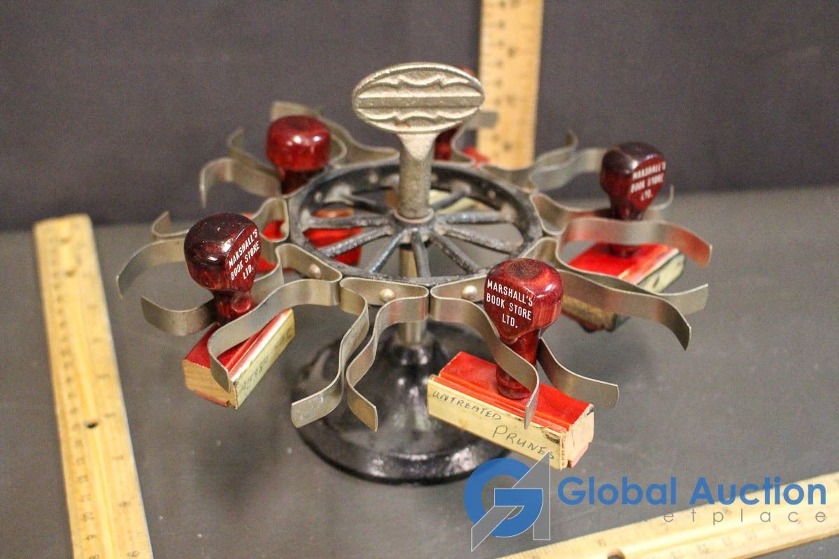 Vintage Mid Century Stamp Display Carousel Holder Cast Iron Base and (5) Stamps