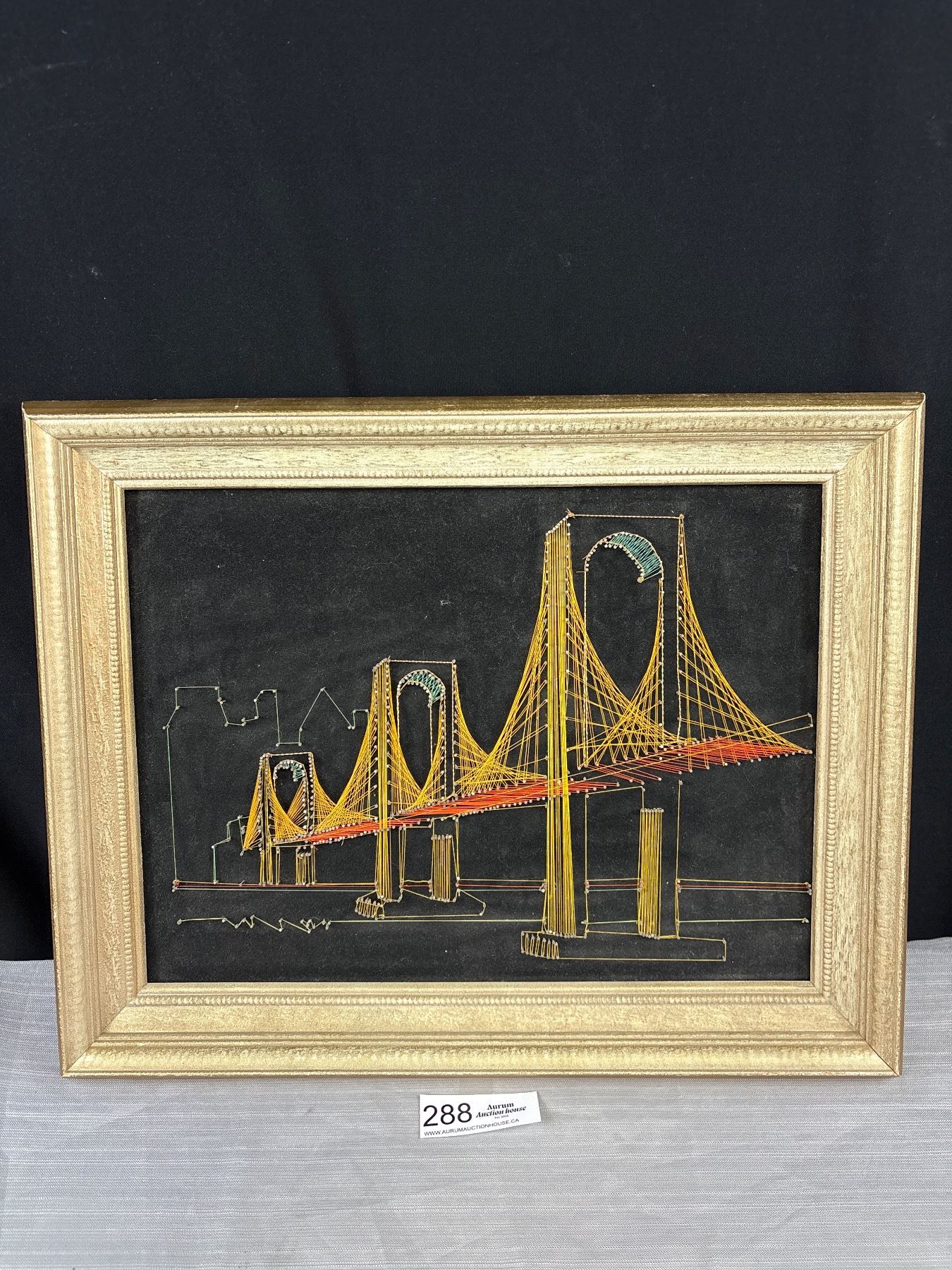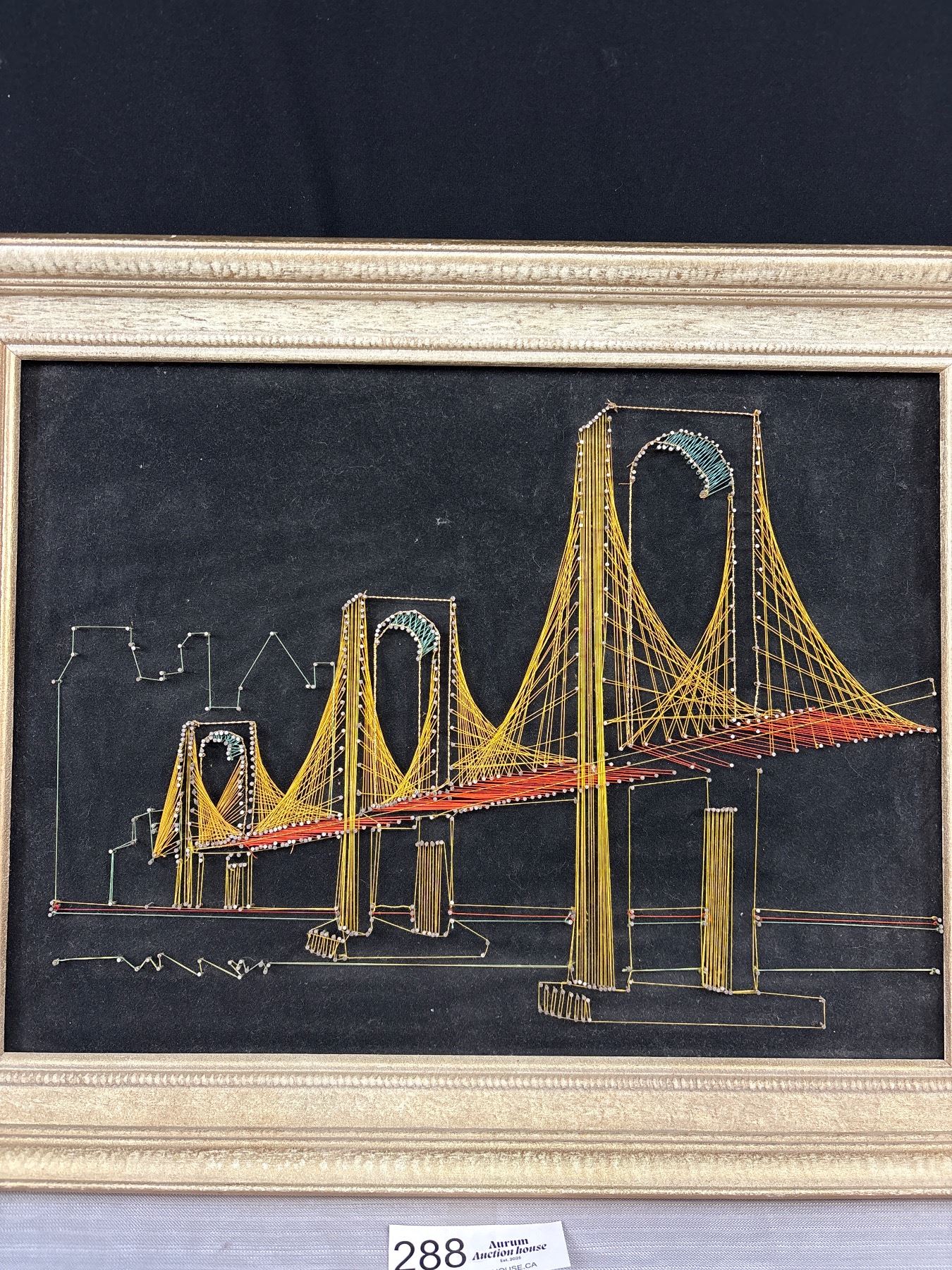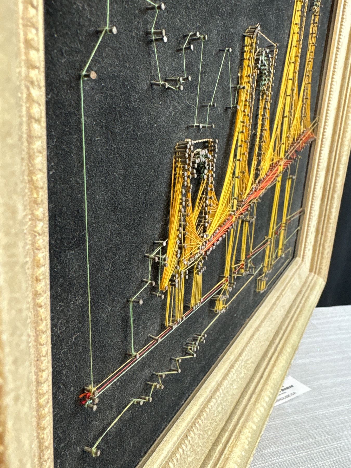 Vintage Mid Century String Art On Black Velvet Background of Bridge