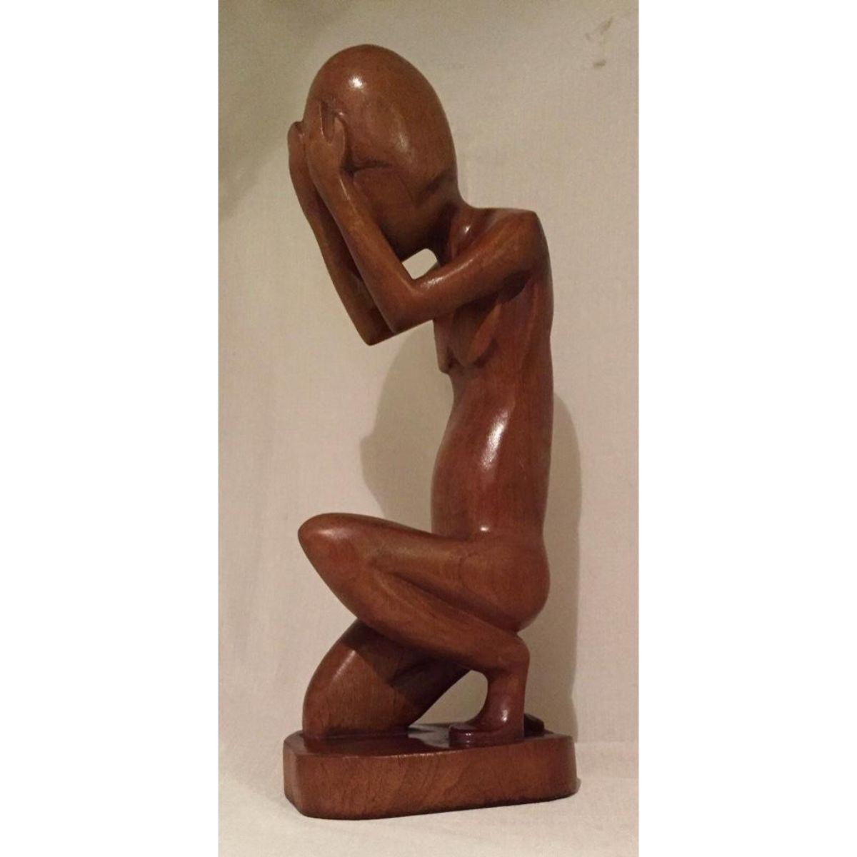 Vintage, Mid-Century Modern wood carving - Despair, depicts a nude female figure kneeling with head in hands. 16".Â