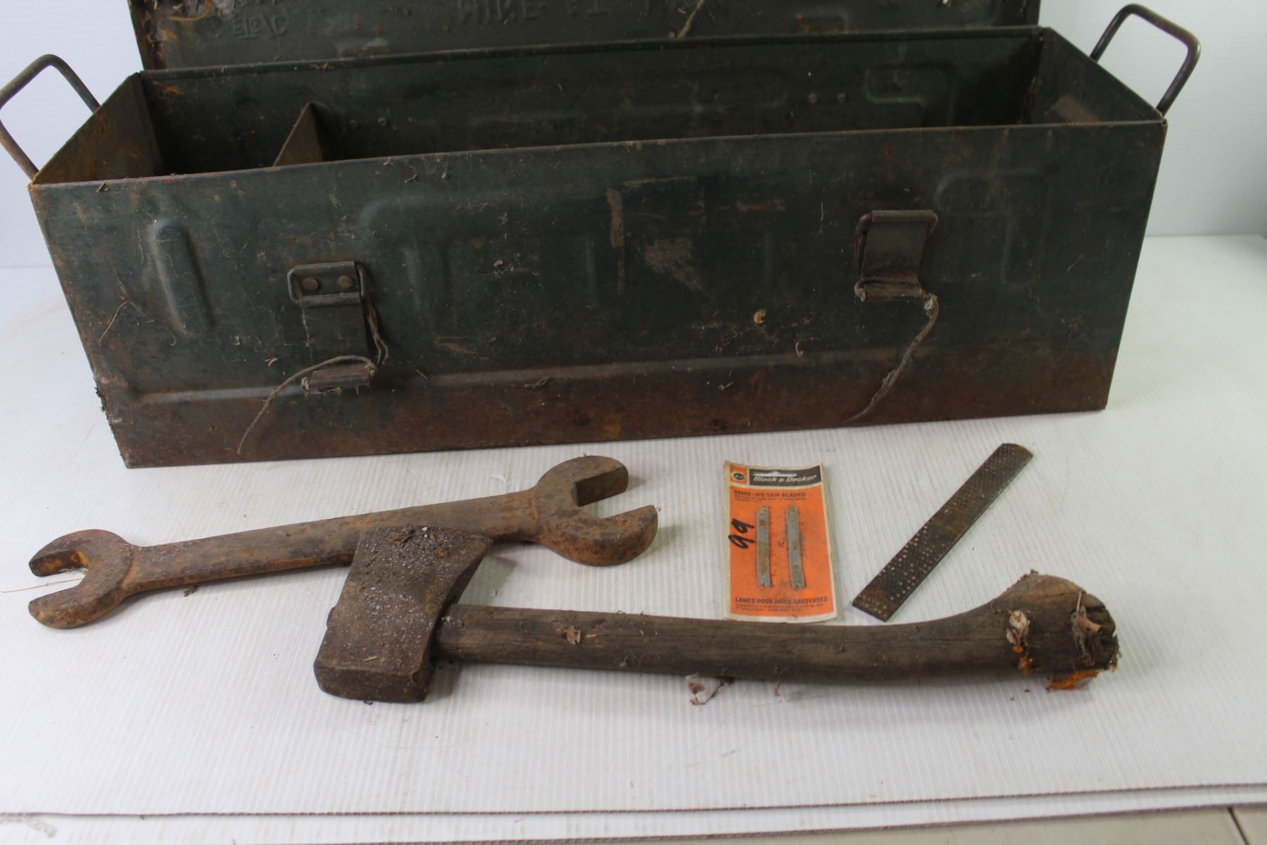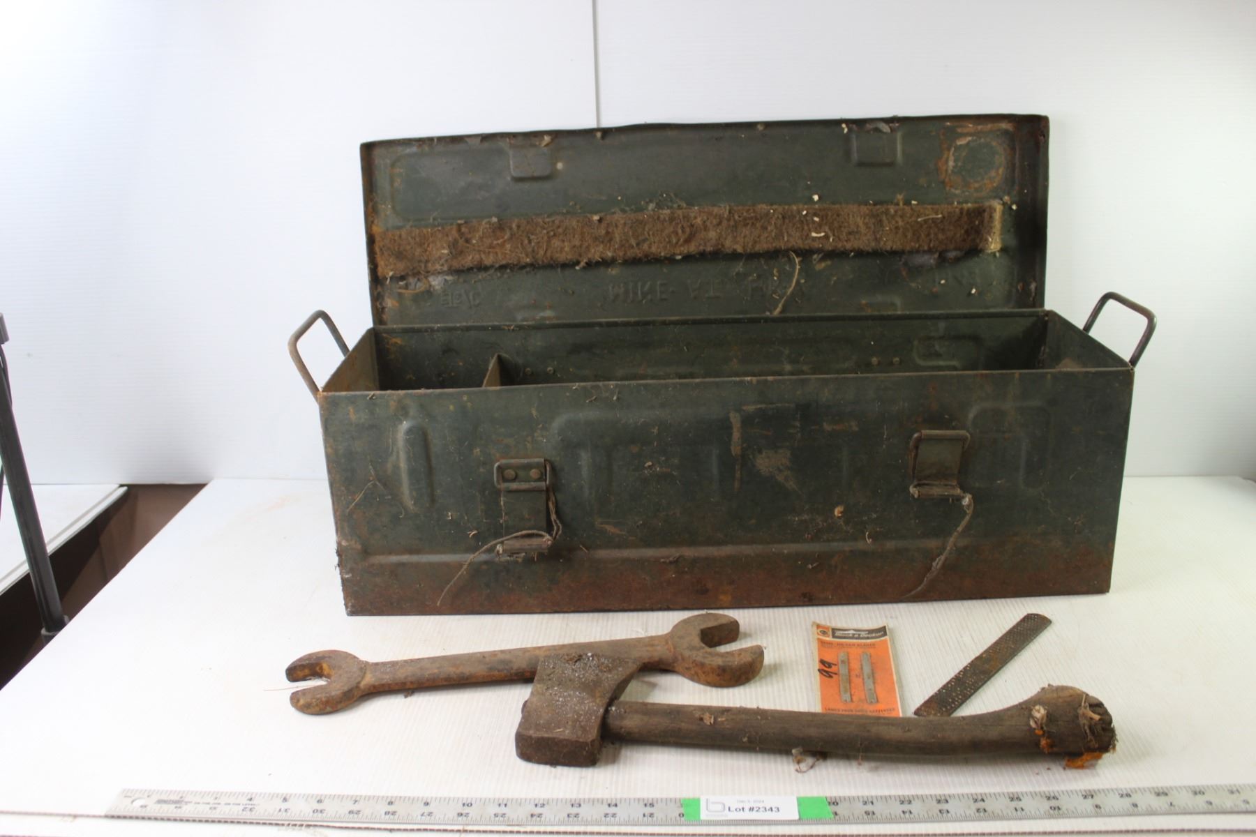 Vintage Military Style Tool Box & Tools 28" Long x 8.75" Tall x 8.75" Wide