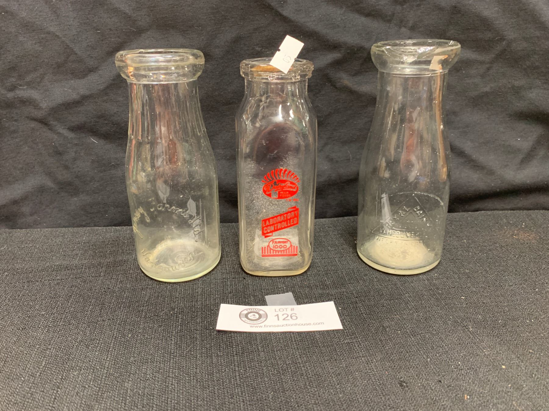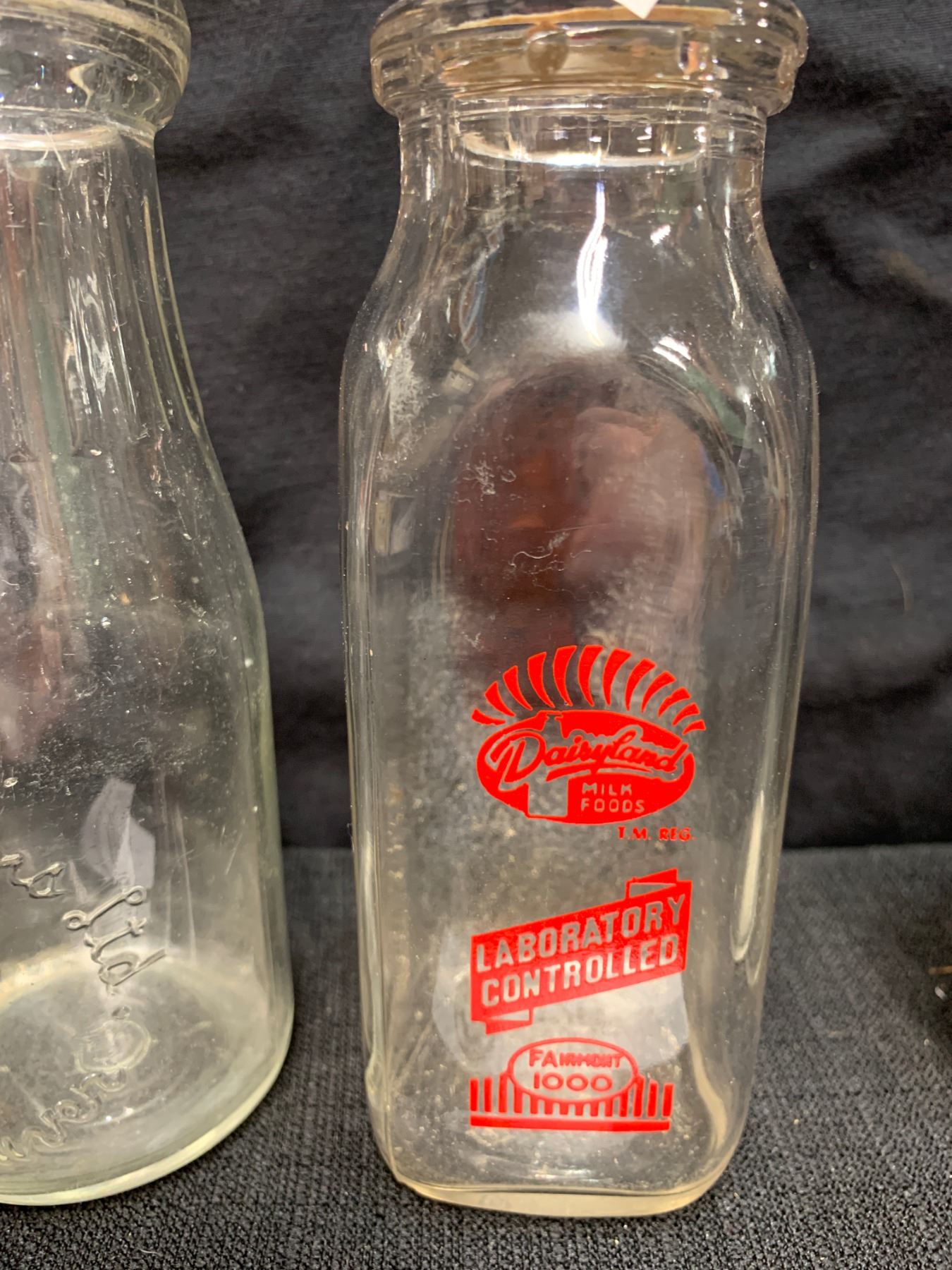 Vintage Milk Bottles. Half Pints Embossed Royal Dairy and Embossed Jersey Farms and a Painted Dairyland