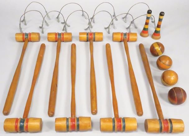 Vintage Miniature Croquet Set. 8 mallets, 4 balls, 10 wickets and 2 posts.