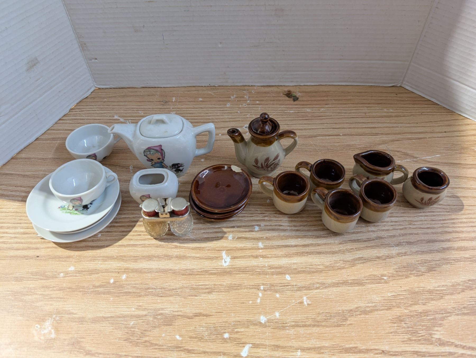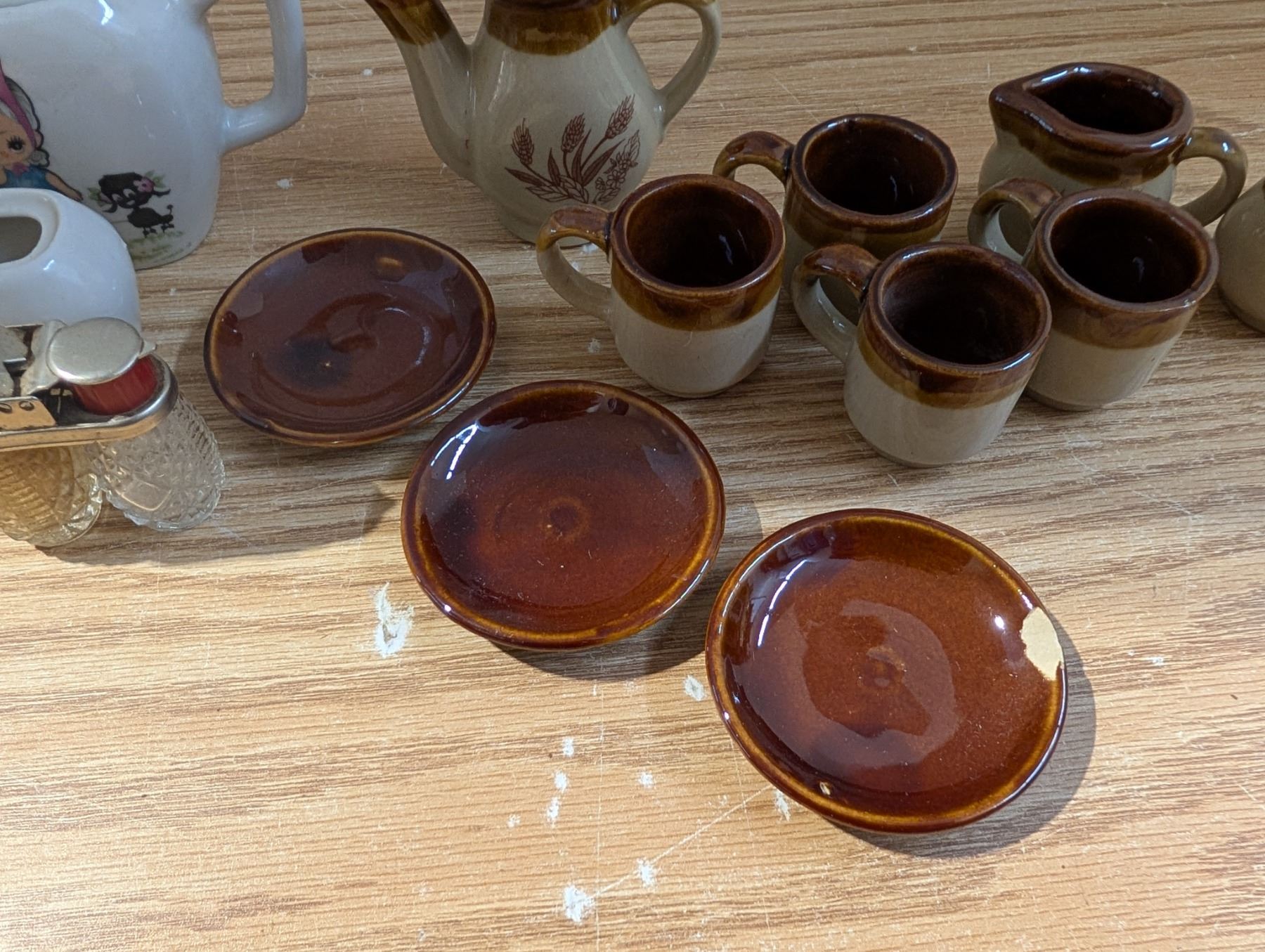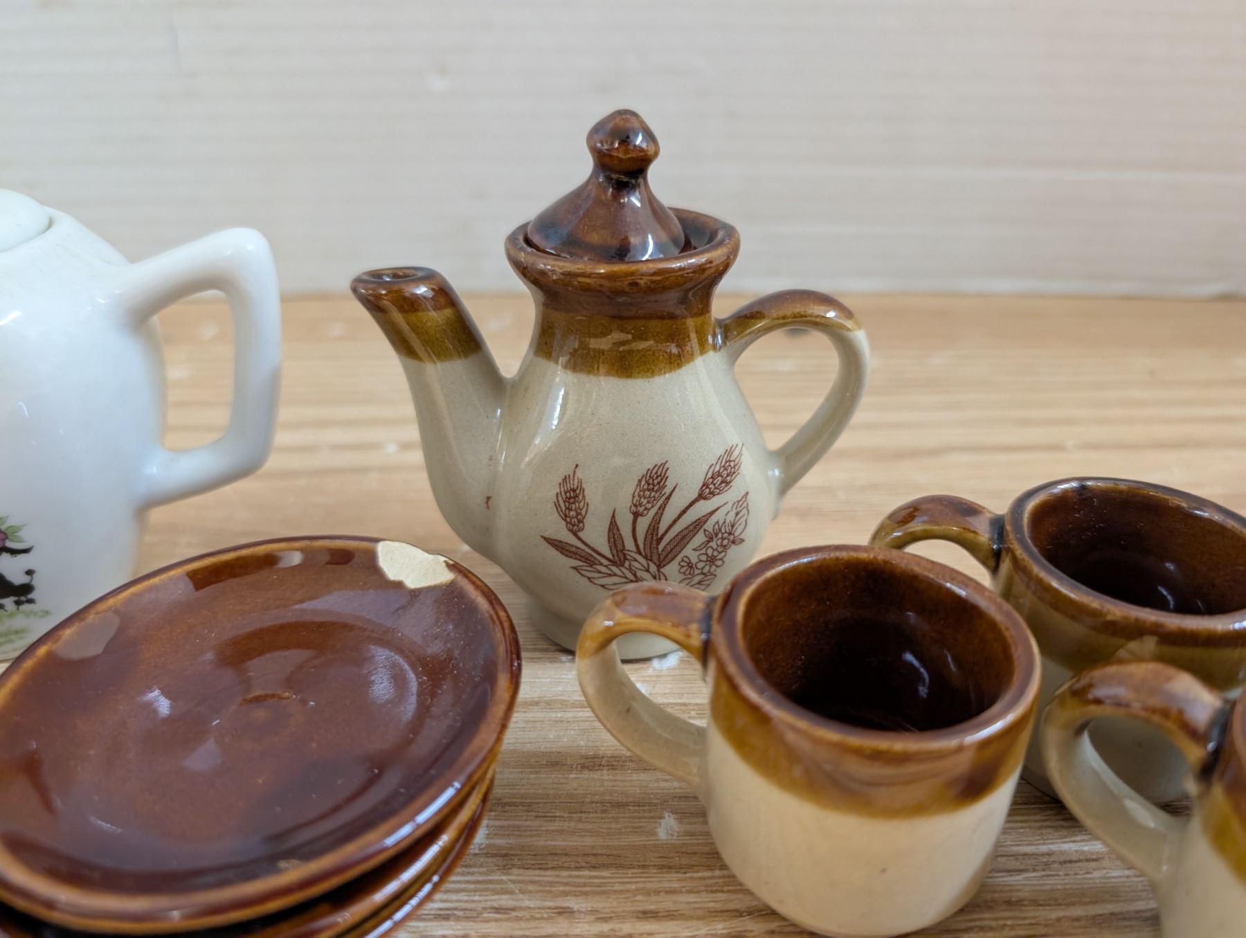 Vintage Miniature Earthen Ware Cup FT Wheat Design Set and Miniature FAO Schware Childs Tea Set