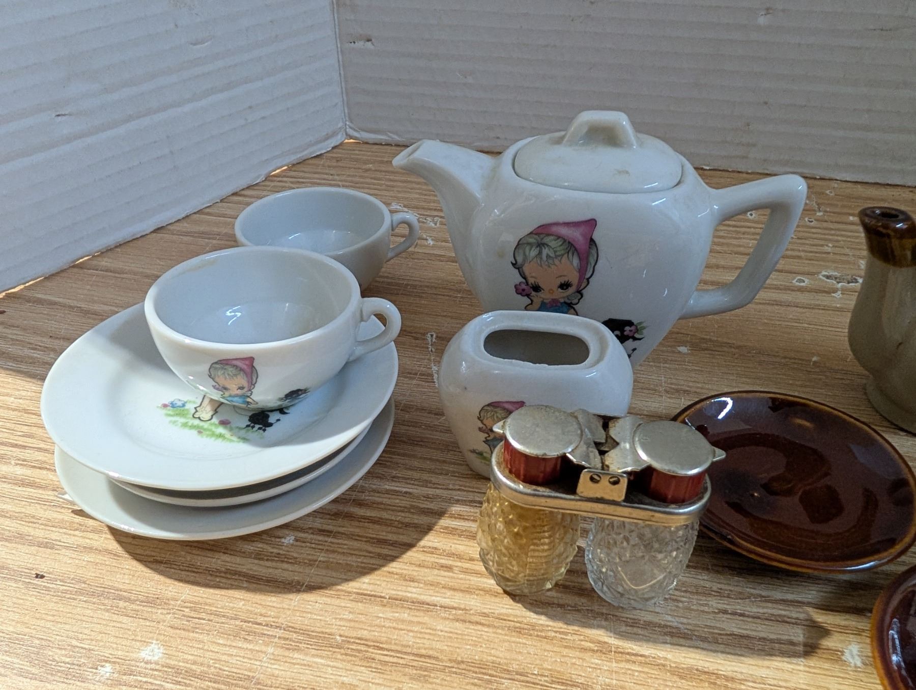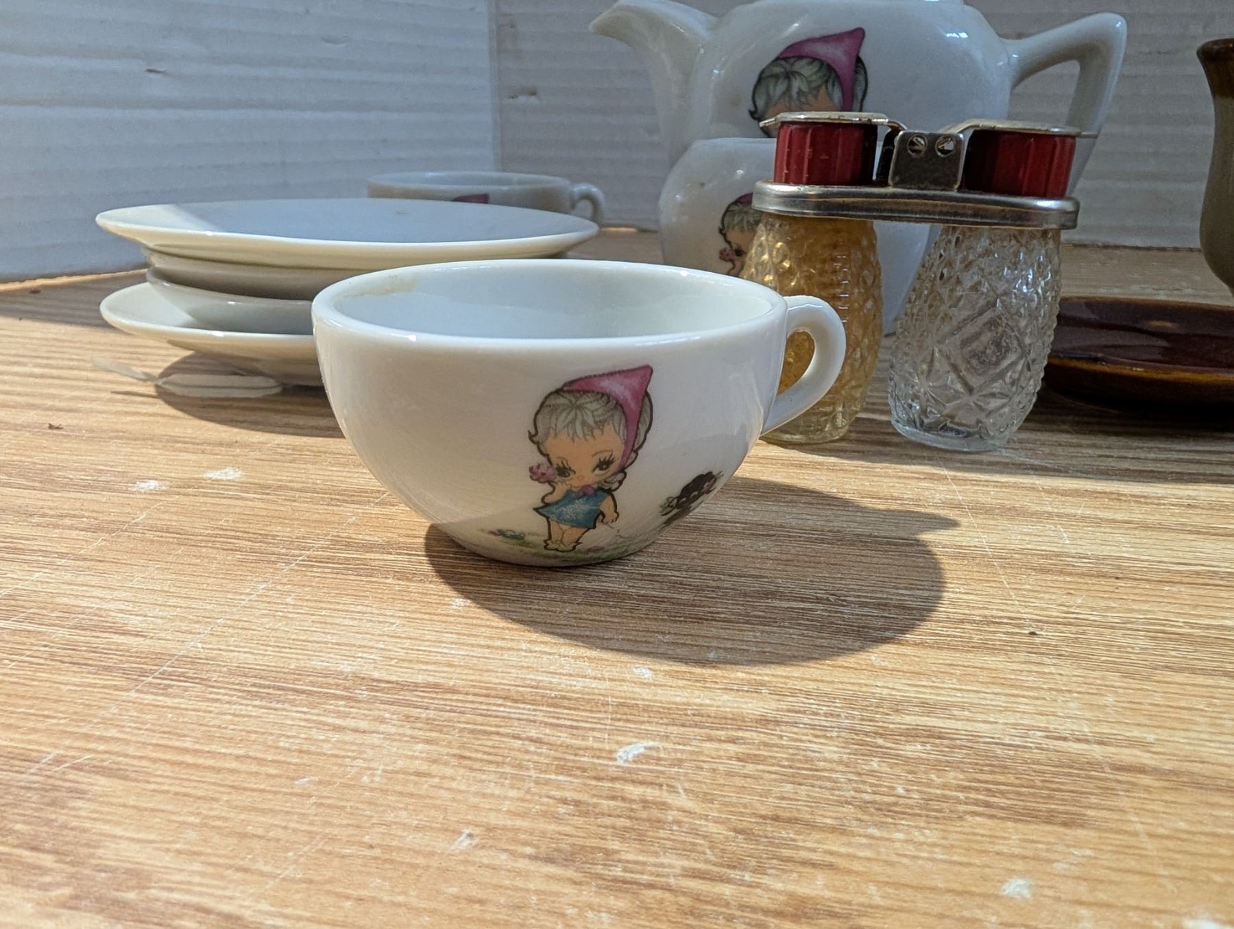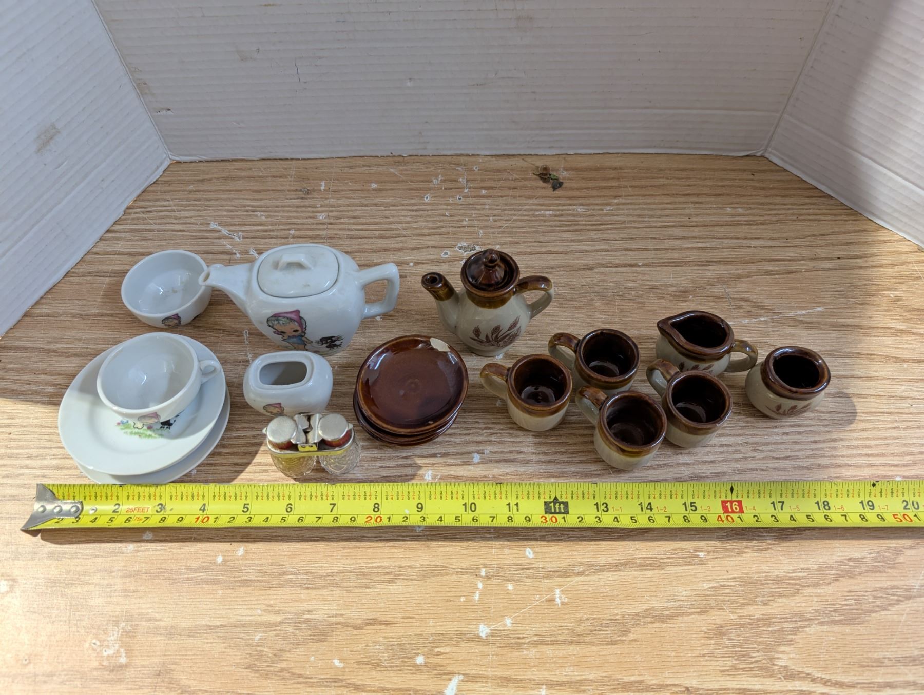 Vintage Miniature Earthen Ware Cup FT Wheat Design Set and Miniature FAO Schware Childs Tea Set