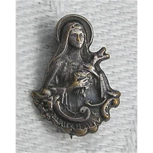 What a wonderful addition to any collection! So tiny and perfect is this religious medal pin, it's a wonder it wasn't lost over the years. Just shy of being ½" it has a simple bent loop on the back to catch the pin. Our best guess at the age based on the pin style, subject style and patina is the 1930's.