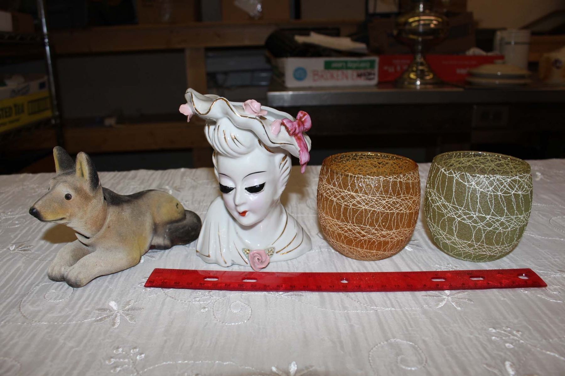 Vintage Misc: Head Vase,Two Cups& Dog Bobble-Head