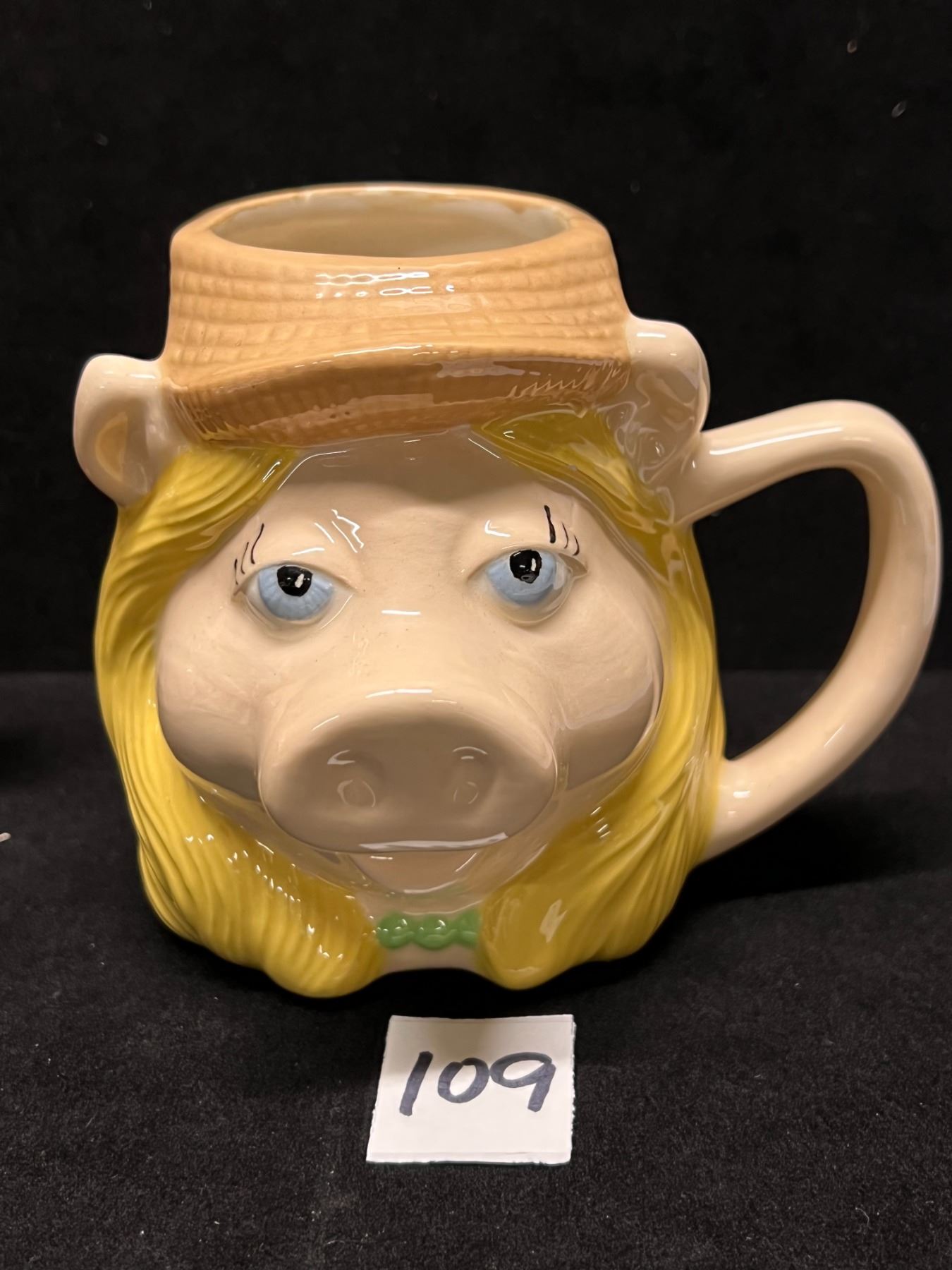 Vintage Miss Piggy & Fozzie Bear Ceramic Mugs Approx 4" tall