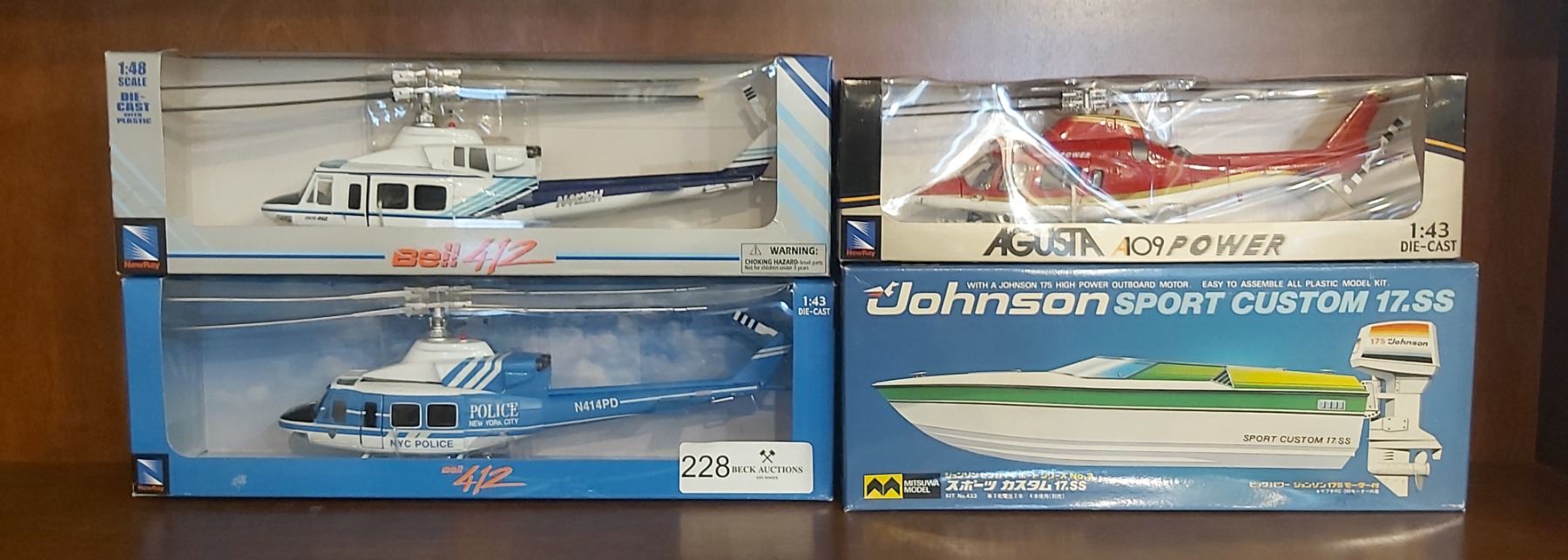 Vintage Mitsuwa Motorized Boat Model Yamaha Custom 17.ss 555 in Box with Motor Plus Helicopters