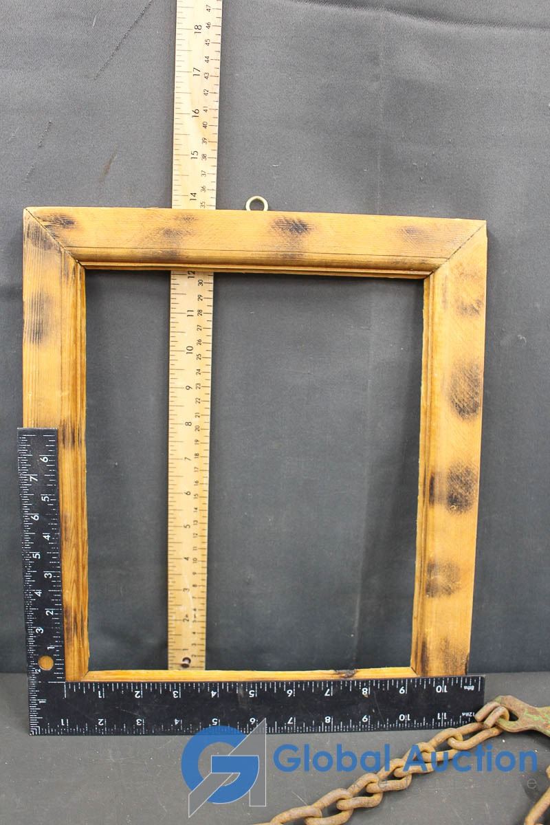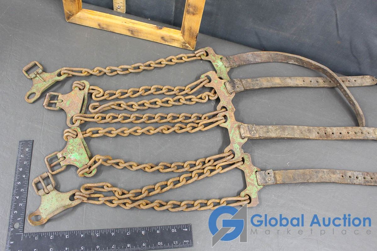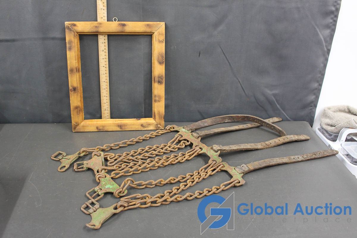 Vintage Model A Tire Chains with Leather Straps & Vintage Wooden Frame