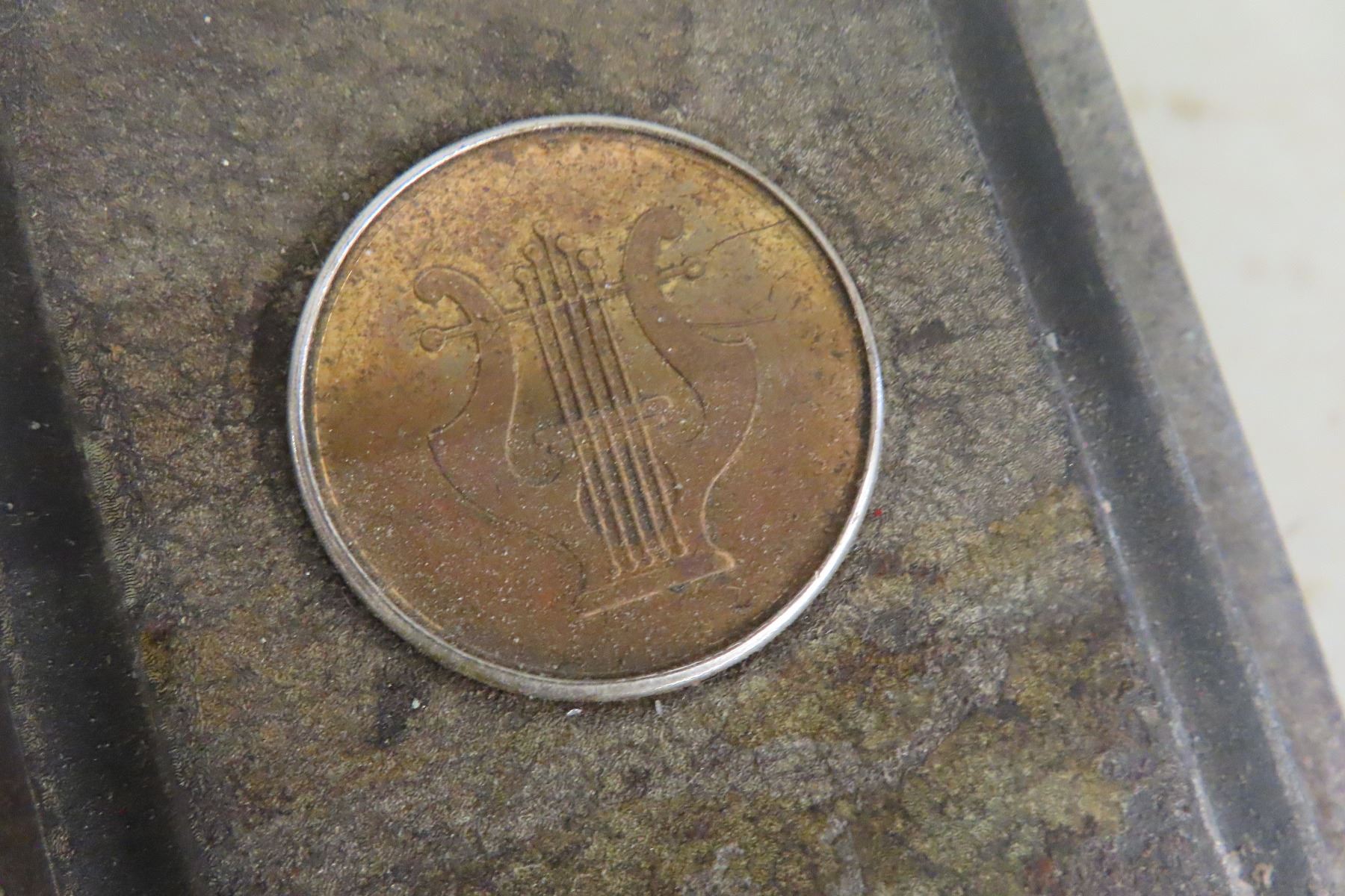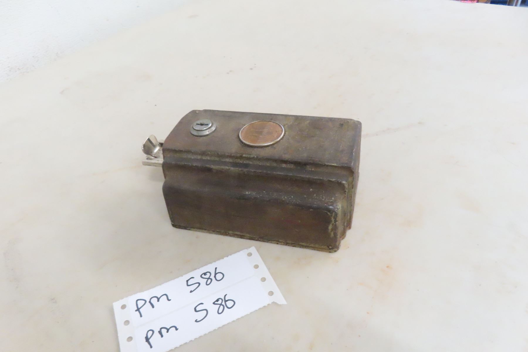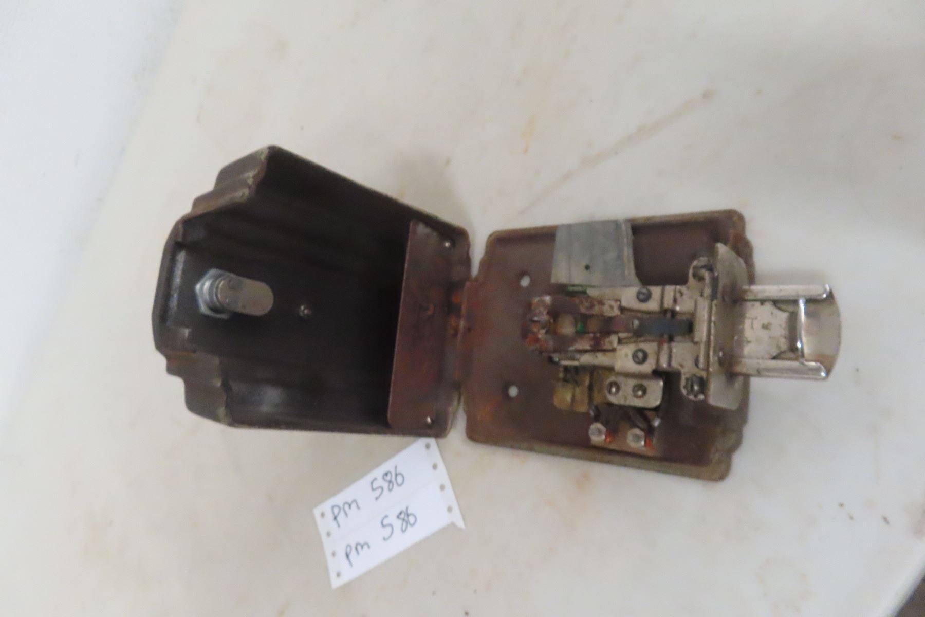 Vintage Monarch Tool & Mfg. Co. Model 700 5¢ Coin Mechanism, used in mid-century jukeboxes and coin-operated music players. A classic piece of 1940s-50s coin-op hardware featuring the Monarch lyre emblem.
