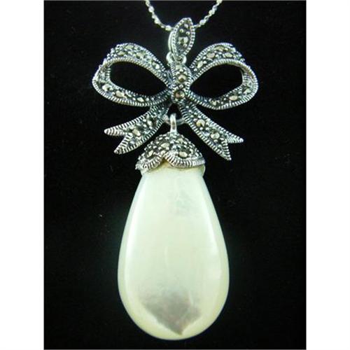 <tr><td>Title:Vintage Mother Pearl Marcasite Silver Pendant</td></tr>
