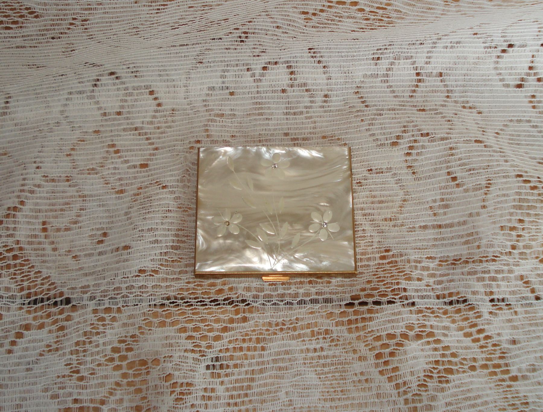 Vintage Mother of Pearl Compact with Original Simpsons Sticker