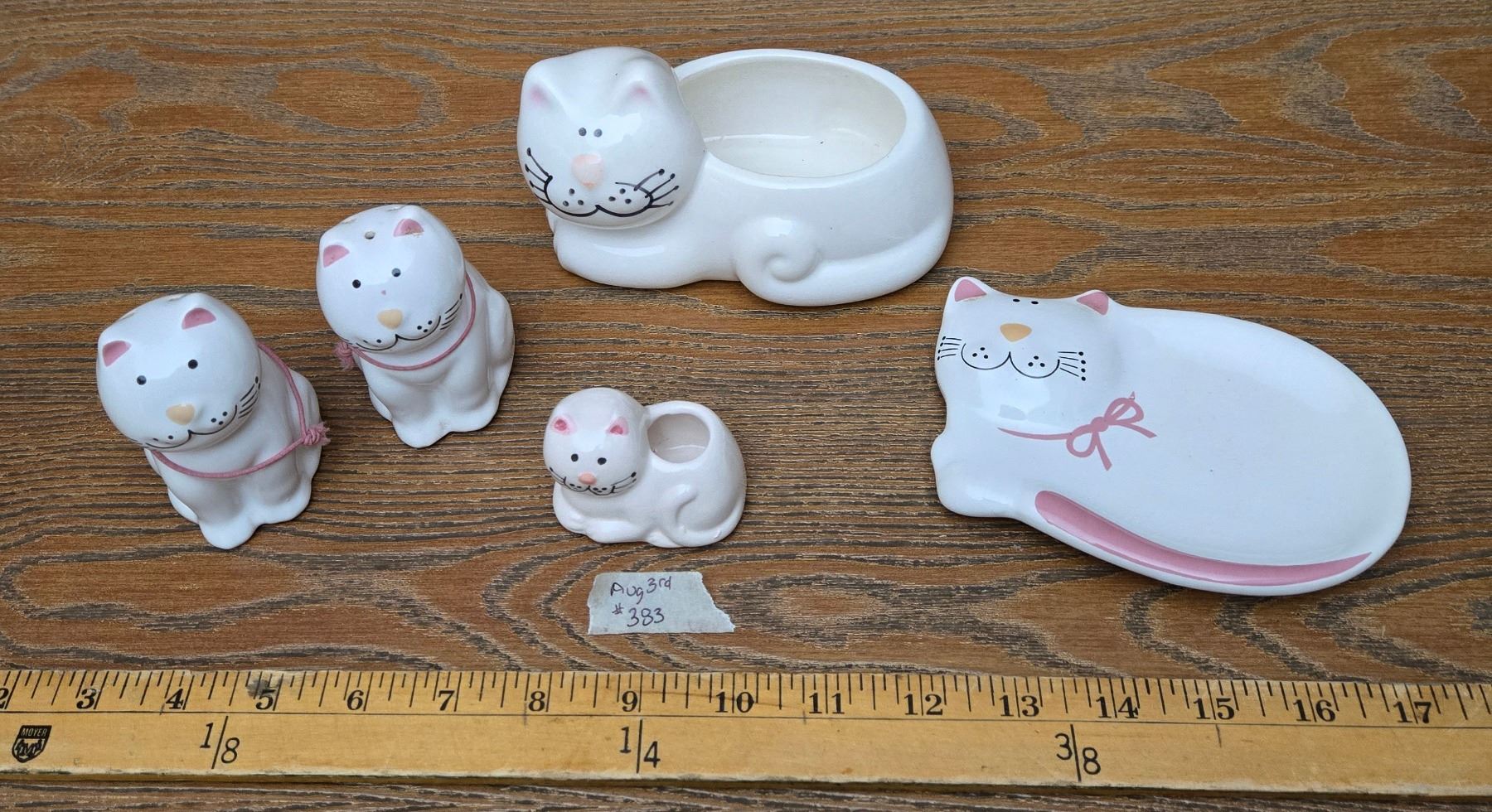 Vintage Mt Clemens Pottery made in Brazil - Set Includes: Scouring Pad Dish, Soap Dish, Salt and Pepper Shakers and Toothpick Holder