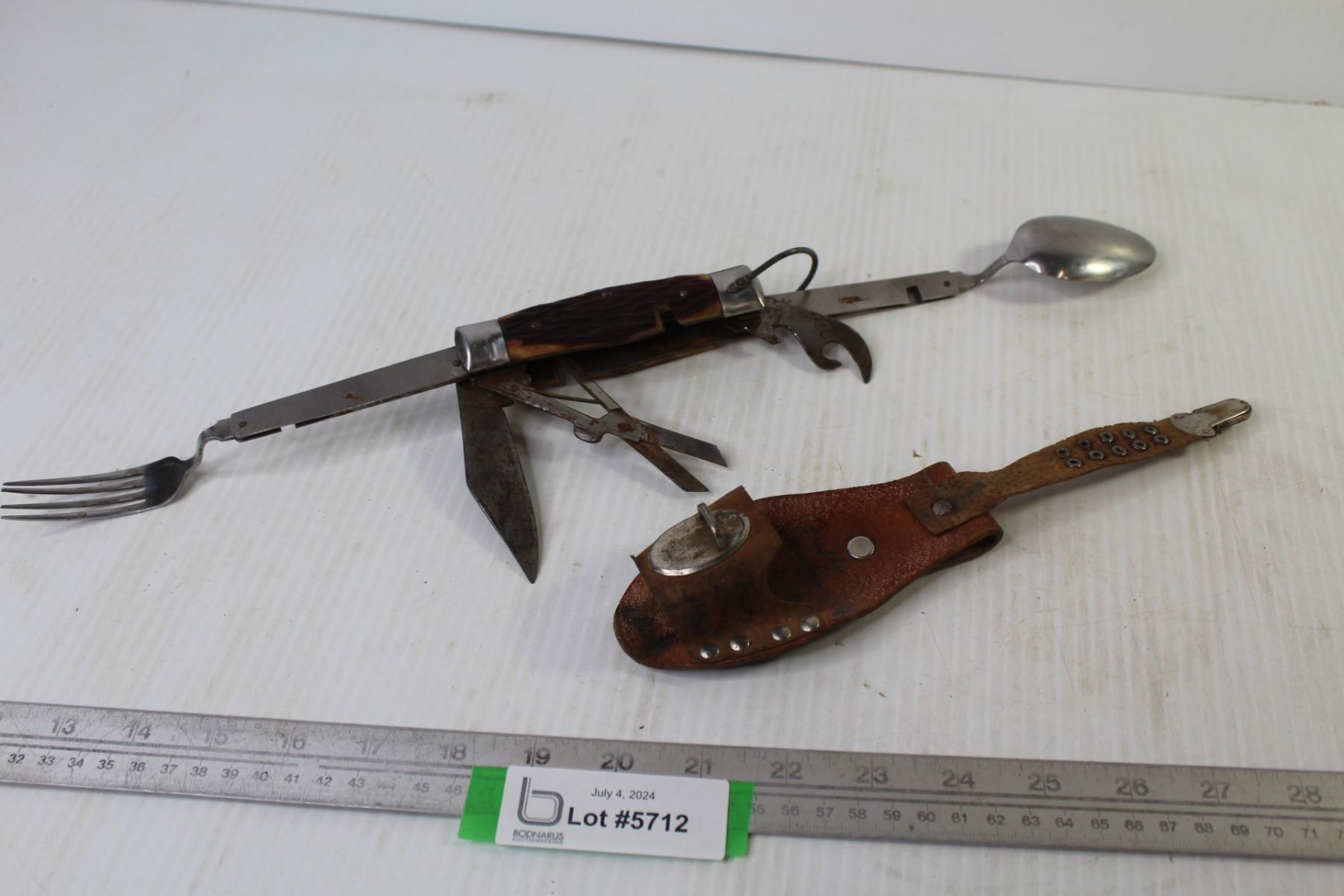 Vintage Multi Tool Camp Knife w/Case (rusty)
