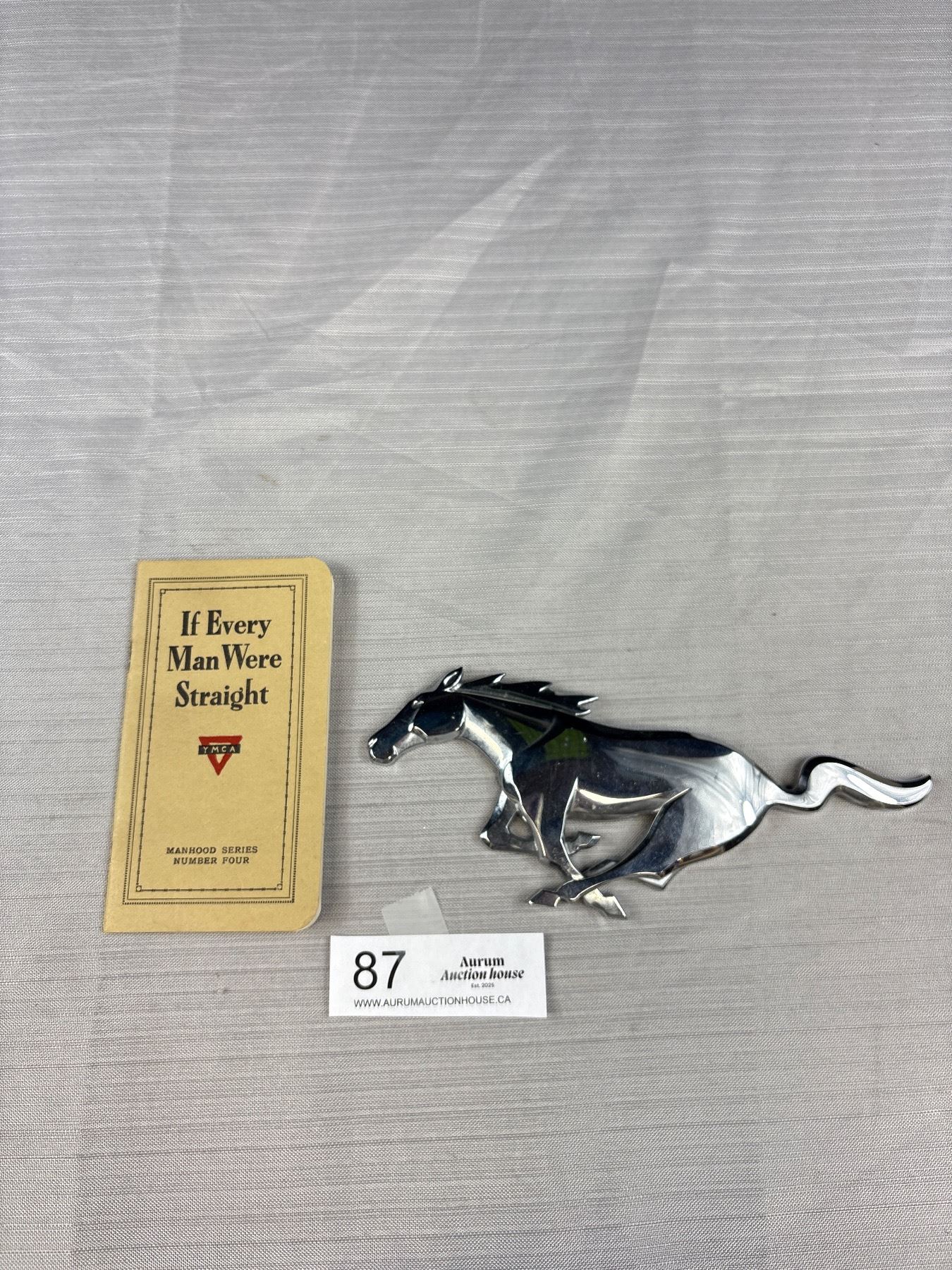 Vintage Mustang Car Emblem and YMCA Booklet 'If Every Man Were Straight'