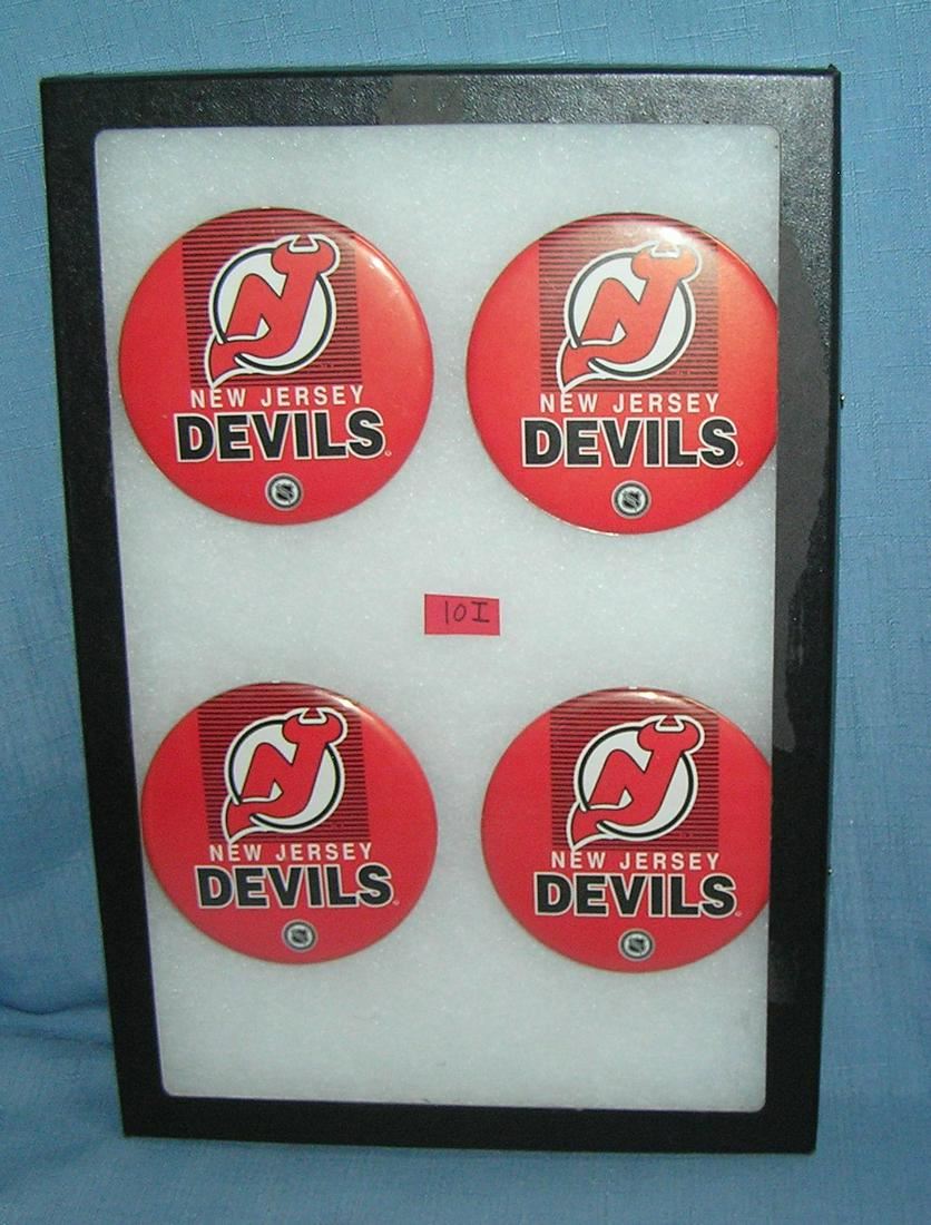 Group of vintage NHL NJ Devils hockey pin back buttons est. value $25.00-$30.00
