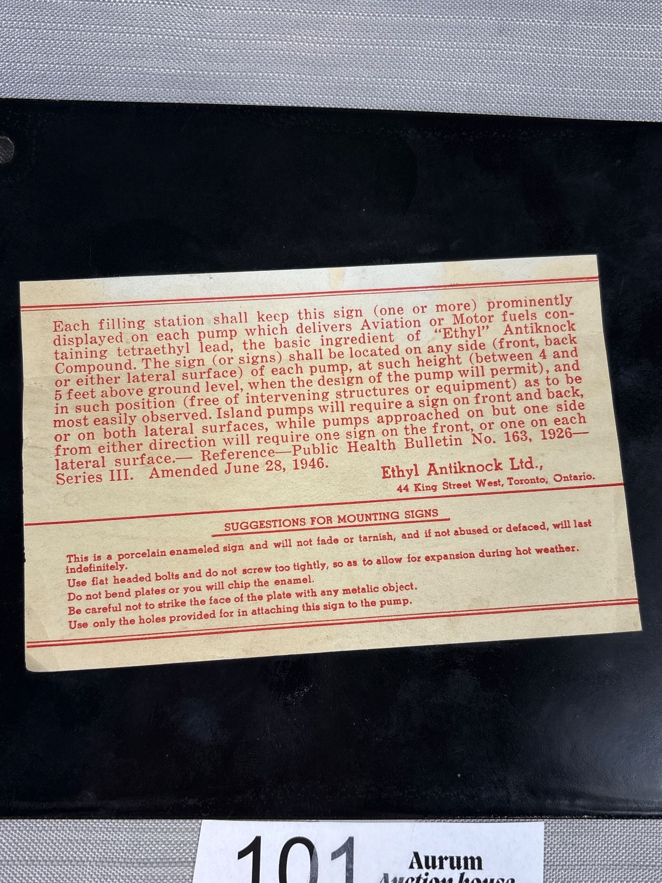 Vintage NOS Porcelain Gas Pump Plate
