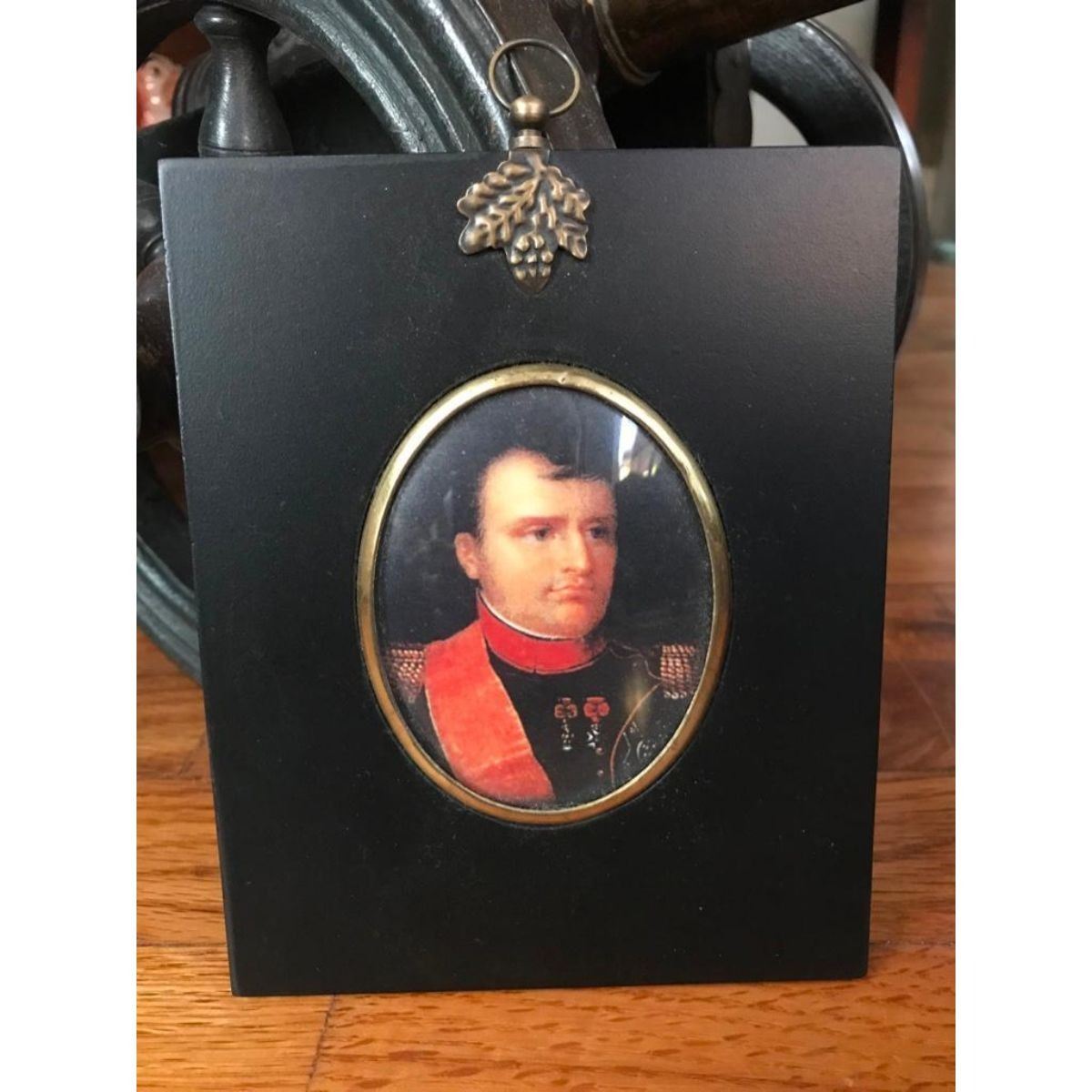 Vintage oval portrait lithograph of Napoleon. Wooden frame with oval convex glass. 5" W X 6" H.Â