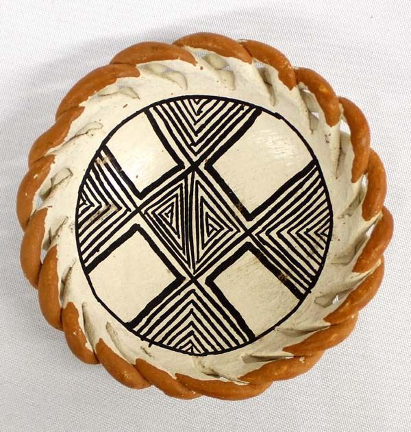 Vintage Native American Acoma Pottery Shallow Bowl, measures 4.5'' x 1'', smeared ink stain on the bottom