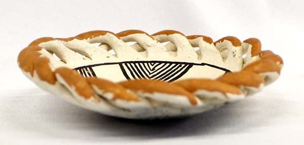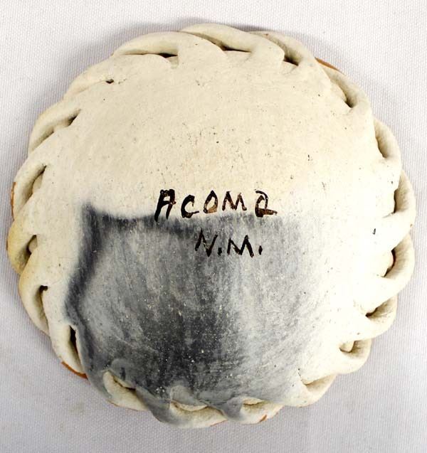 Vintage Native American Acoma Pottery Shallow Bowl, measures 4.5'' x 1'', smeared ink stain on the bottom