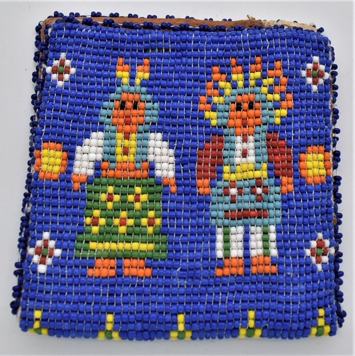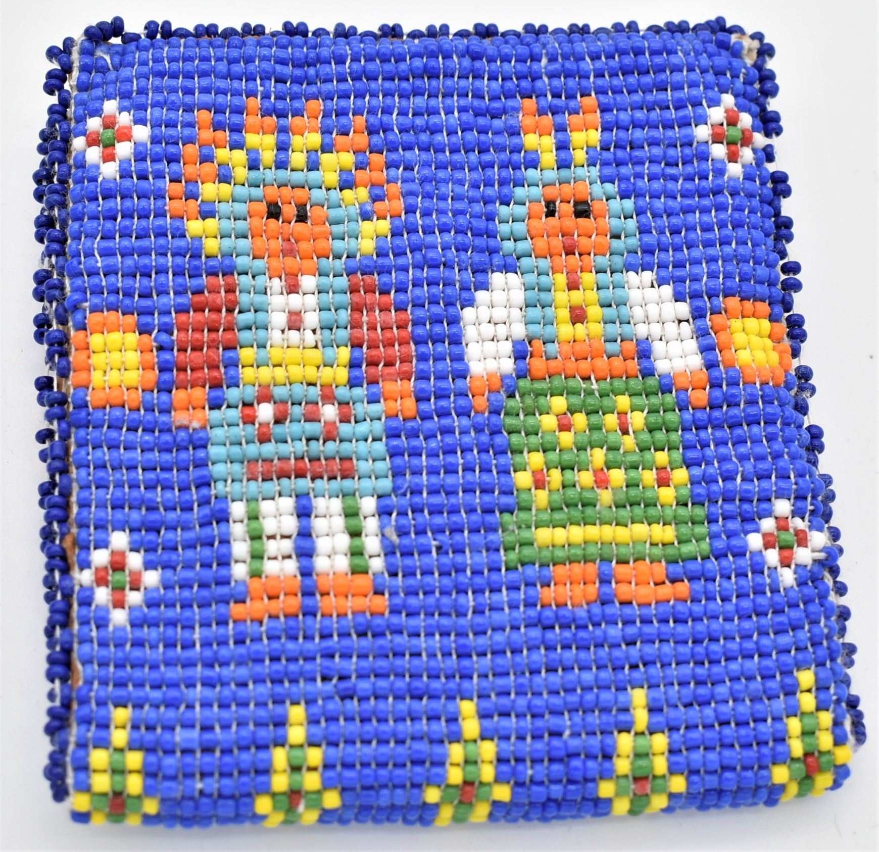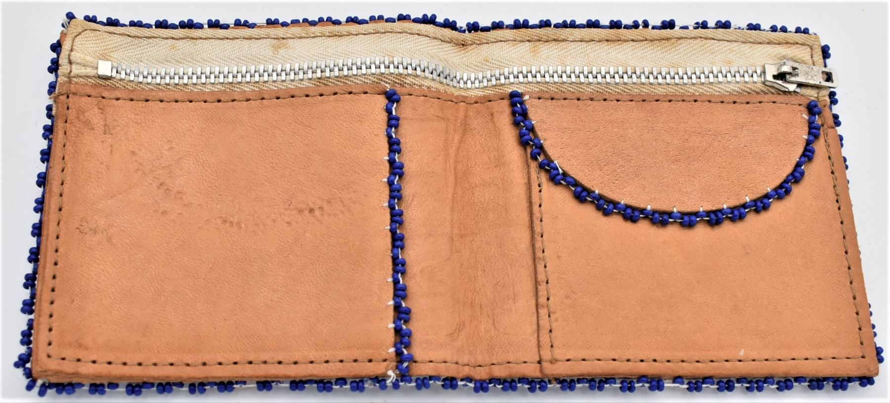 Vintage Native American Beaded Leather Wallet, wallet open measures 3'' x 7'', closed measures 3.5'' x 4'', very soft leather inside, vibrant colors