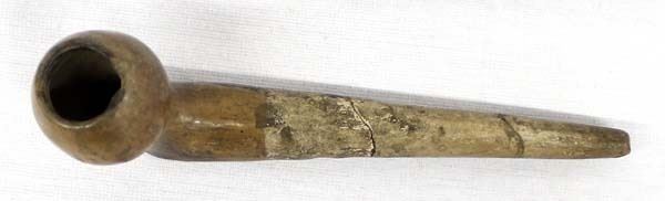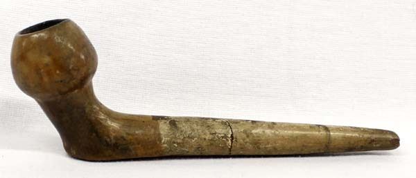 Vintage Native American Catawba Pipe, measures 2.5'' x 7.5'' x 1.5'' and has been glued in 2 places and has a small chip in rim of bowl