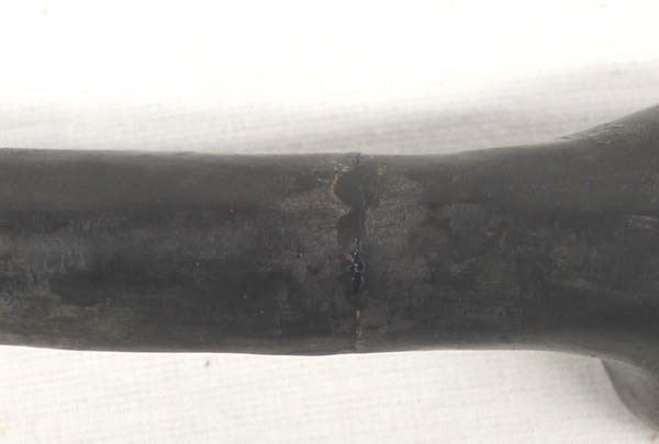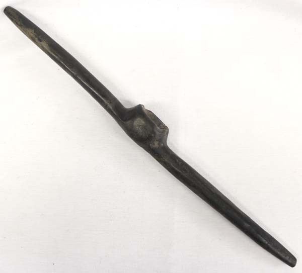 Vintage Native American Double Stemmed Pottery Pipe, measures 2'' x 22'' x 2'', chip in bowl and one of the stems has been glued