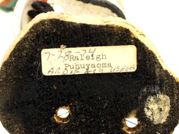 Vintage Native American Hopi Cactus Kachina. Has tag on bottom that says, ''Raleigh Puhuyaoma'' in type and in handwriting, ''7-28-74'' and some indistinguishable words. Buyers Pay Actual Shipping and Handling Charges(see terms and conditions for more information).