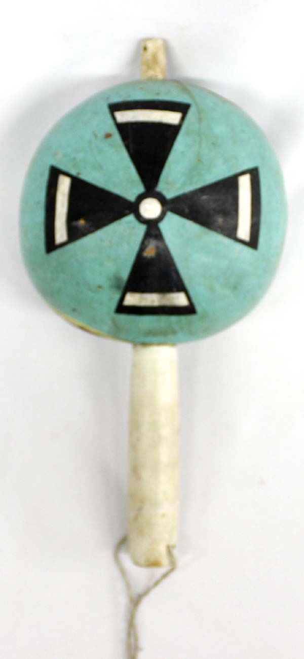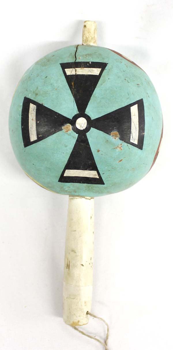 Vintage Native American Hopi Gourd Rattle, measures 5'' x 10'' x 3.5'', wood handle, gourd has crack that has been glued