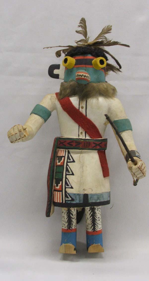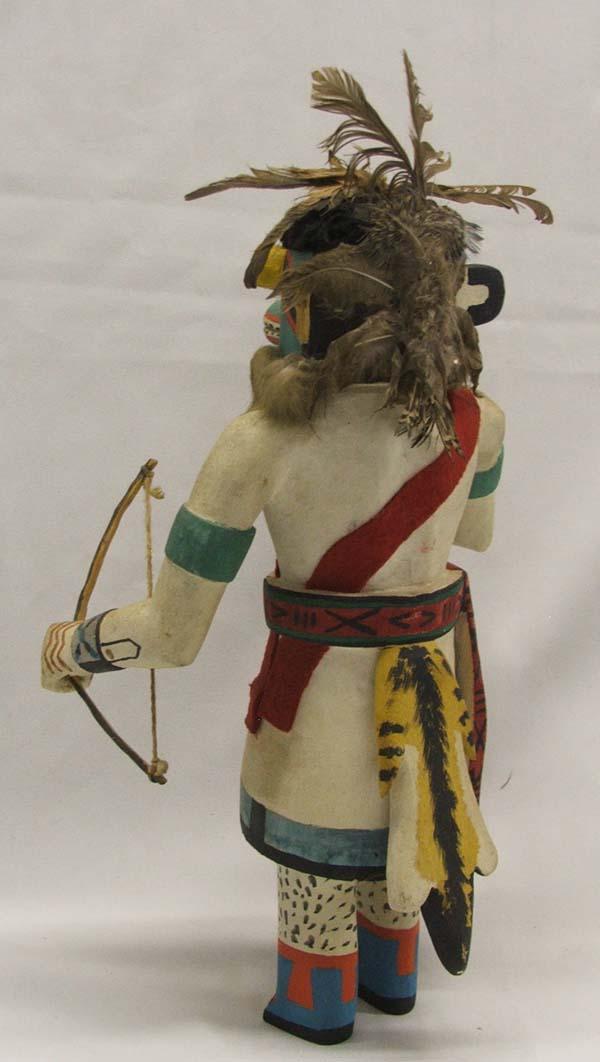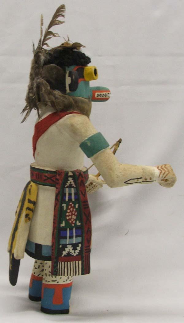 Vintage Hopi Kachina. Measures approx. 13"H x 6.5"W. Kachina is missing one ear and item from right hand, also some damage to feet. Buyers Pay Actual Shipping and Handling Charges(see terms and conditions for more information).