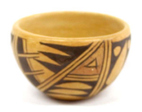 Vintage Native American Hopi Pottery Bowl by Clarice M., measures 3'' x 2'' and is signed on the bottom, Sityatki Revival lines and designs